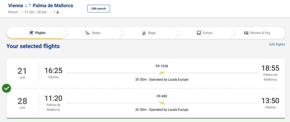 Im Frühling können Sie zu günstigen Preisen auf die Balearen fliegen. Hin- und Rückflugtickets ab Wien mit Ryanair im April - nach Mallorca ab 37 eur und nach Ibiza für 44 eur.