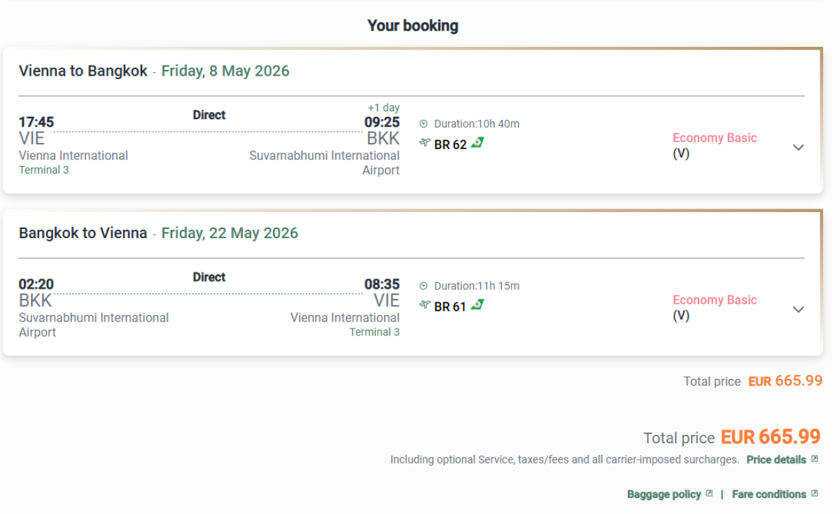 Wer bequem und ohne unnötige Umstiege nach Asien reisen möchte, sollte sich das aktuelle Angebot von EVA Air ansehen, die mit einer Direktverbindung von Wien nach Bangkok fliegt.