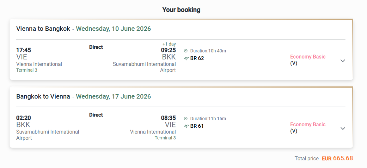 Hin- und Rückflugtickets von Wien nach Bangkok können zwischen März und Juli für 666 Euro erworben werden.