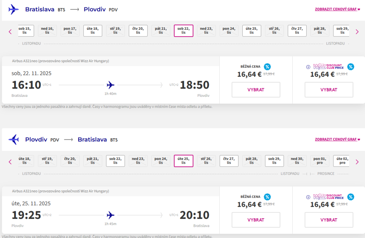 Mit Wizz Air können Sie im Winter in die bulgarischen Städte Plovdiv und Varna reisen. Hin- und Rückflugtickets von Bratislava nach Plovdiv und Varna können für 33 Euro erworben werden - diesmal auch für WDC-Mitglieder zum gleichen Preis.
