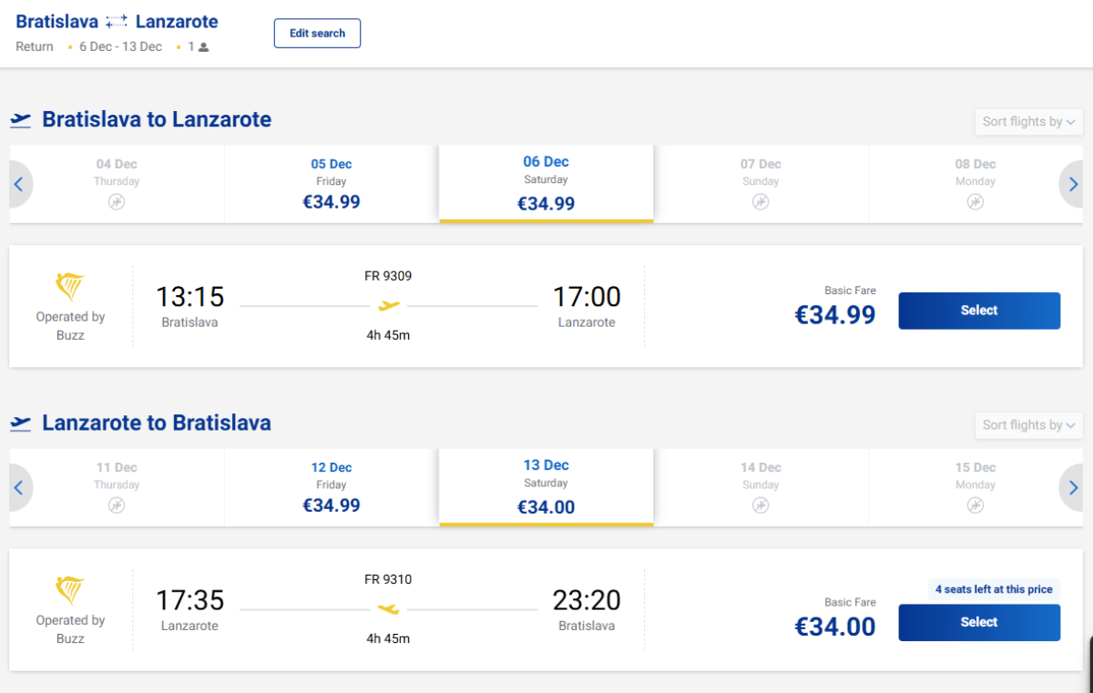 Die günstigsten verfügbaren Termine ab Bratislava:
