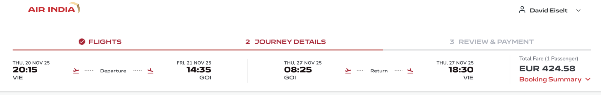 Die günstigsten Tickets können direkt auf der Website der Fluggesellschaft erworben werden, zusammen mit einer kostenlosen Registrierung für das Treueprogramm Maharaja Club, und zwar für 424 eur.