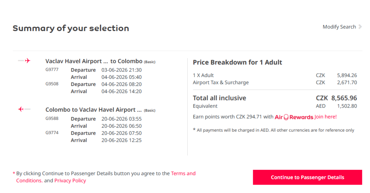 Nach Sri Lanka von Prag und Wien mit Air Arabia im Juni