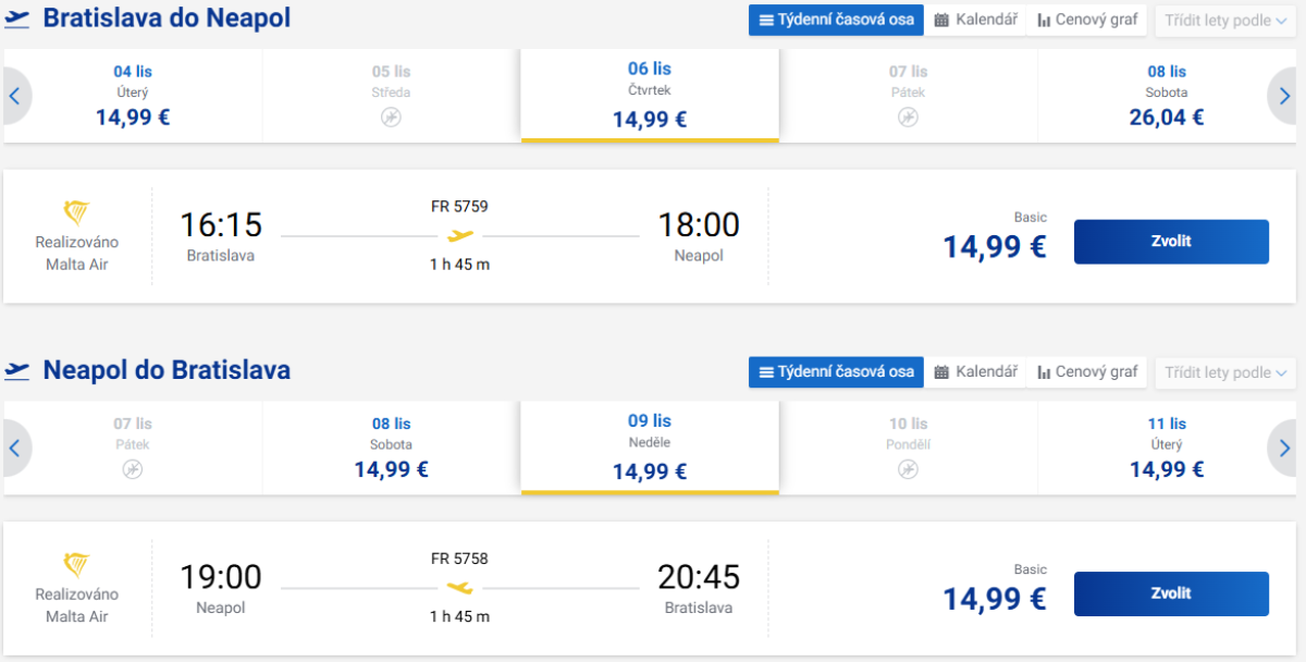 Vor allem Ryanair greift mit sehr attraktiven Preisen auf vielen ihrer Strecken an. Am interessantesten ist für uns heute das Angebot von Hin- und Rückflügen zwischen Bratislava und Neapel, Italien, wo man Tickets für den gesamten November für 30 Euro kaufen kann.