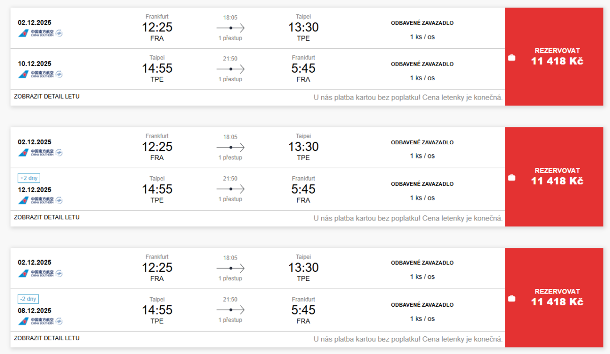 Taipeh ab Frankfurt mit China Southern im November und Dezember