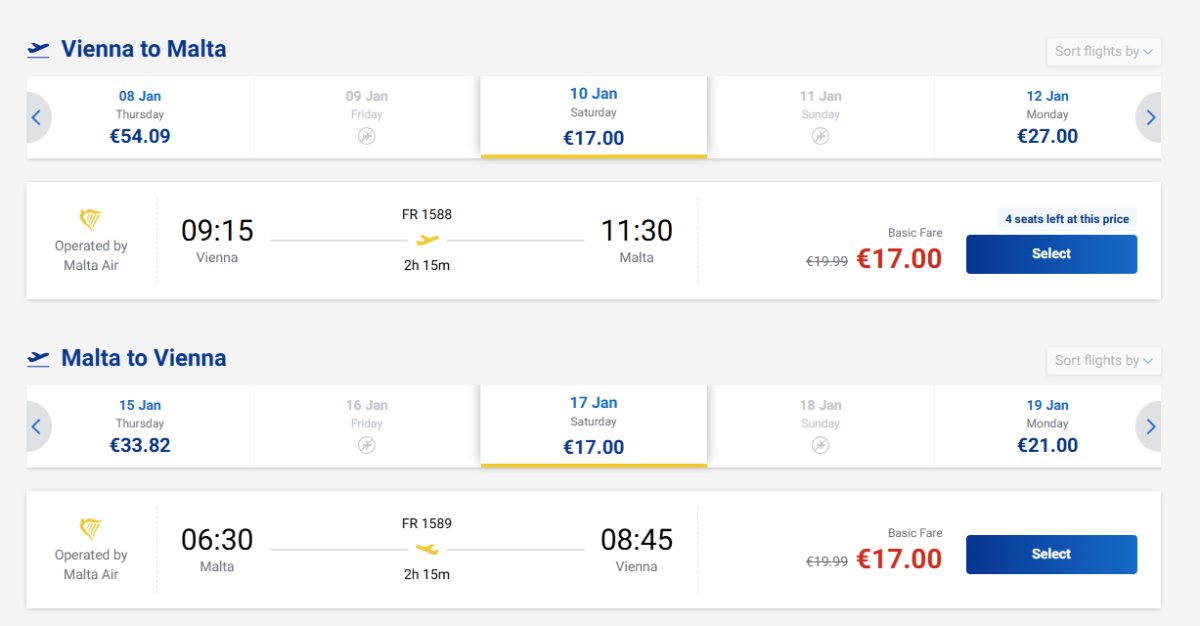Hin- und Rückflugtickets von Wien nach Malta sind jetzt mit Ryanair an folgenden Terminen am günstigsten:
