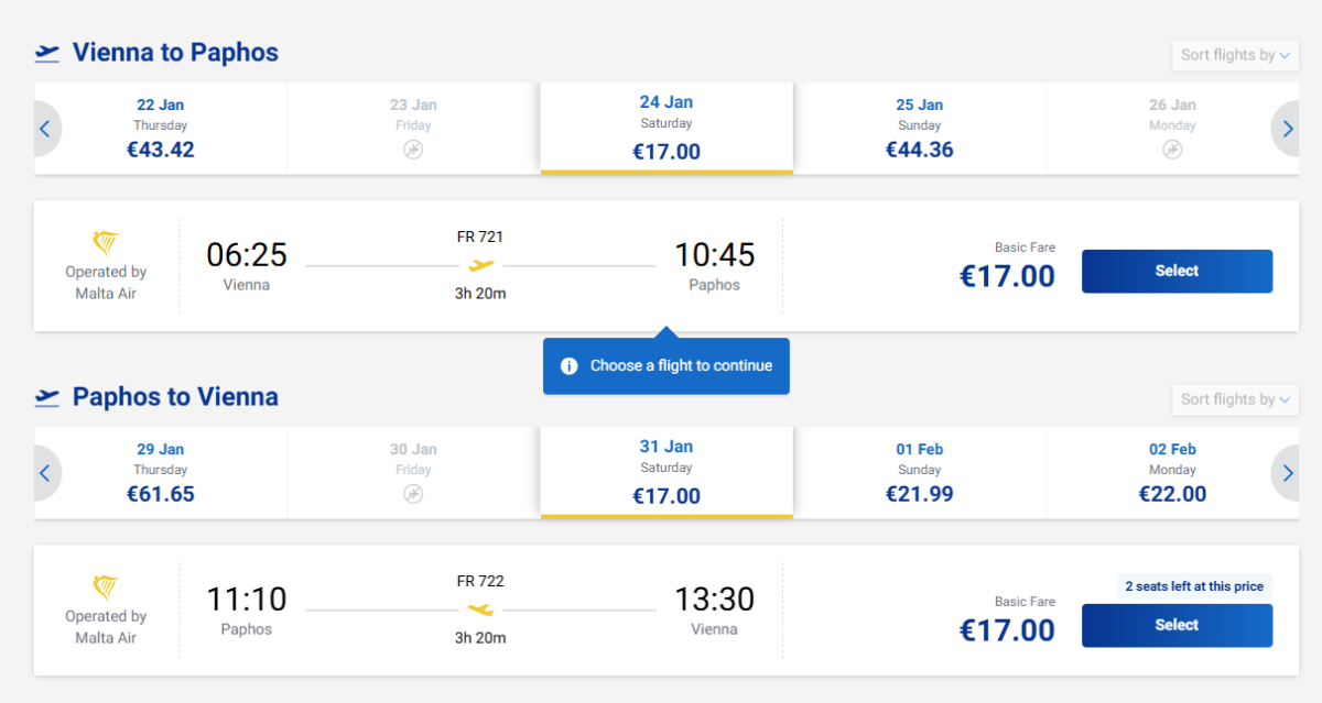 Im Januar können Sie zu günstigen Preisen nach Larnaca und Paphos auf Zypern reisen. Im Winter liegen die Temperaturen bei angenehmen 17 °C, ideal, um die Insel zu erkunden.