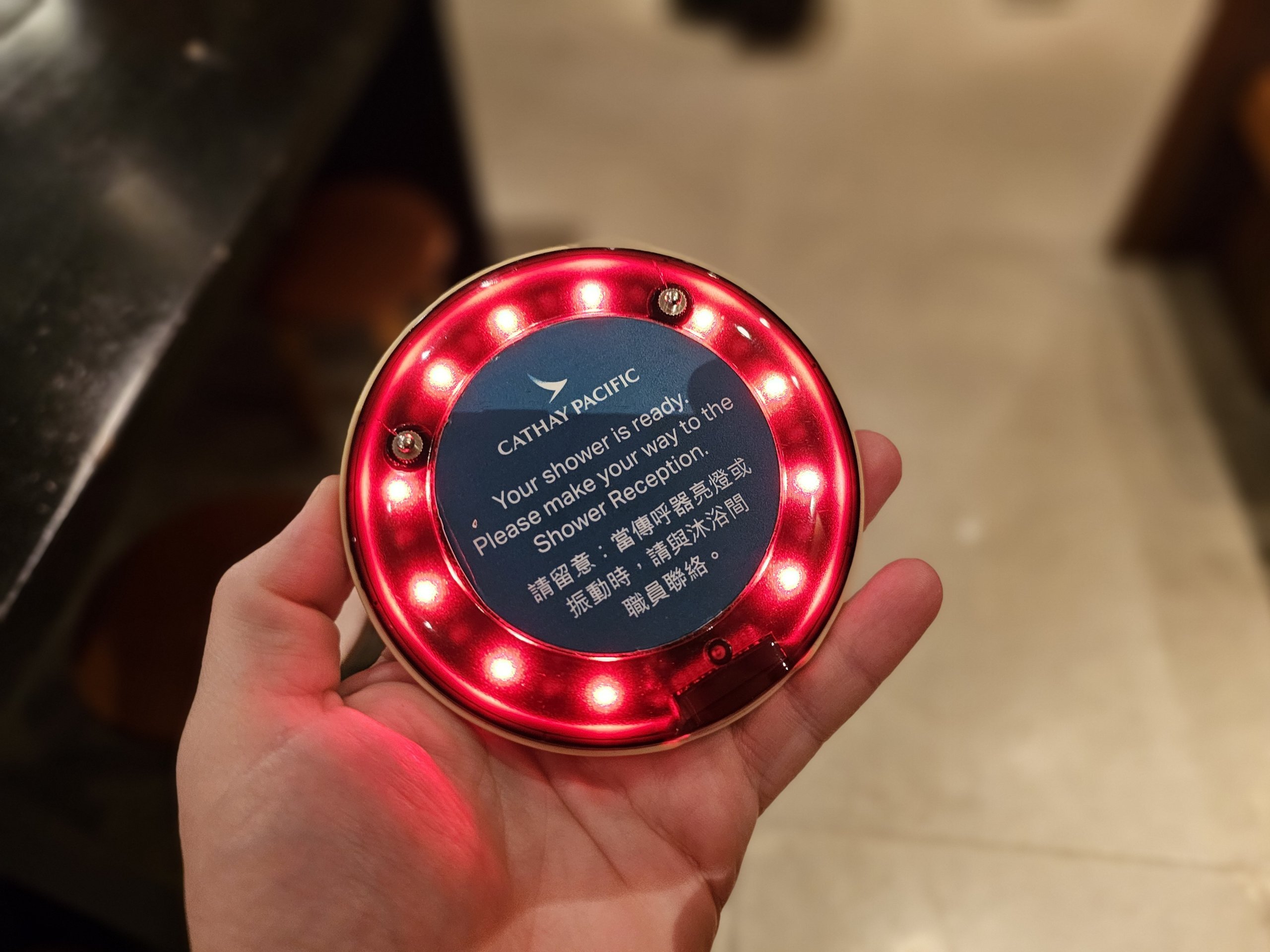 Wenn alle Duschen belegt sind, erhalten Sie einen Pager, der blinkt, sobald ein Platz frei wird.