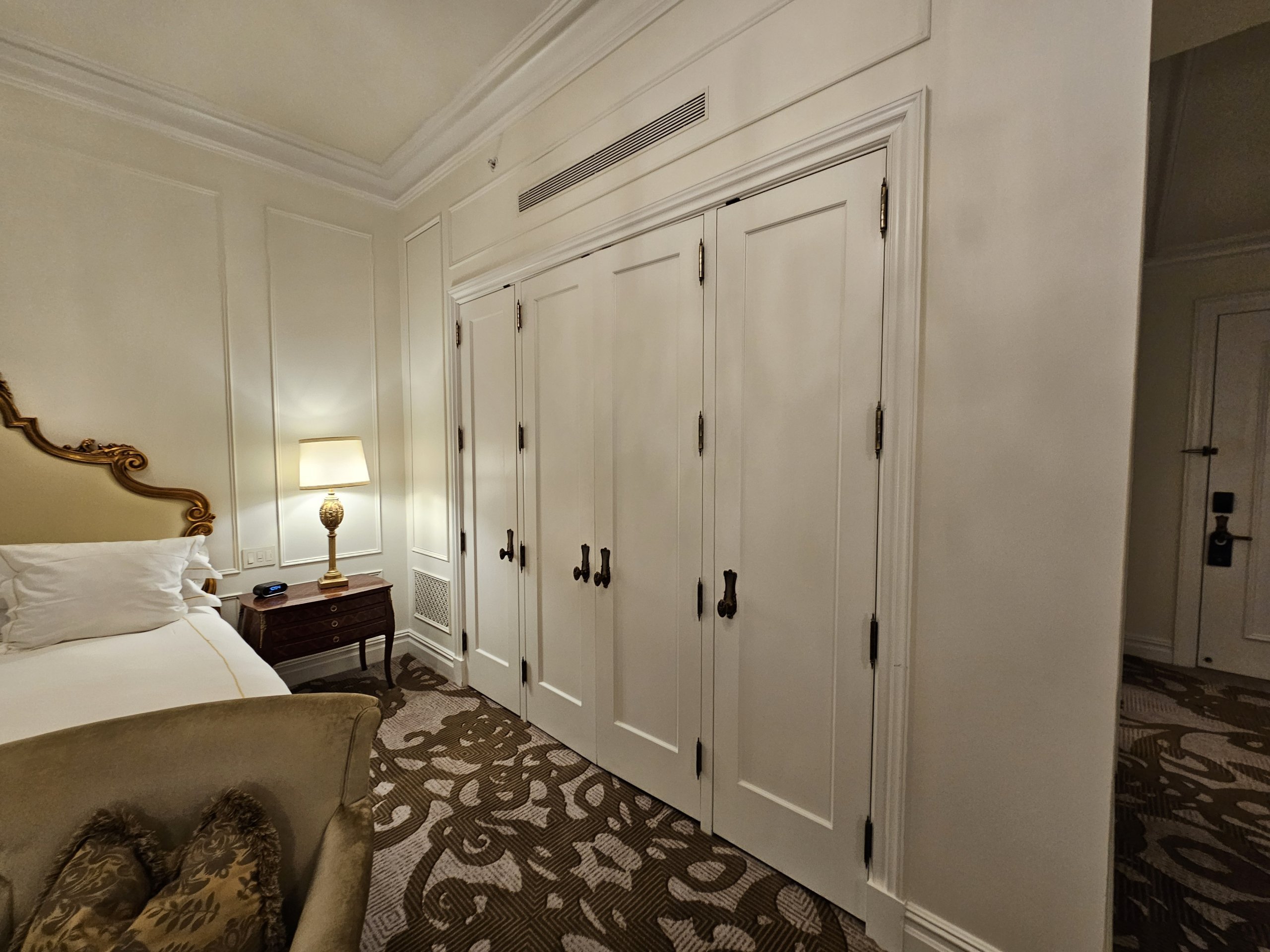 Das Zimmer selbst ist ebenfalls geräumig und hat vor allem einen schönen großen Einbauschrank, in dem auch ein Safe, Bademäntel, ein Bügeleisen mit Bügelbrett oder Hausschuhe untergebracht sind. Was für ein Unterschied zu The Standard, High Line!