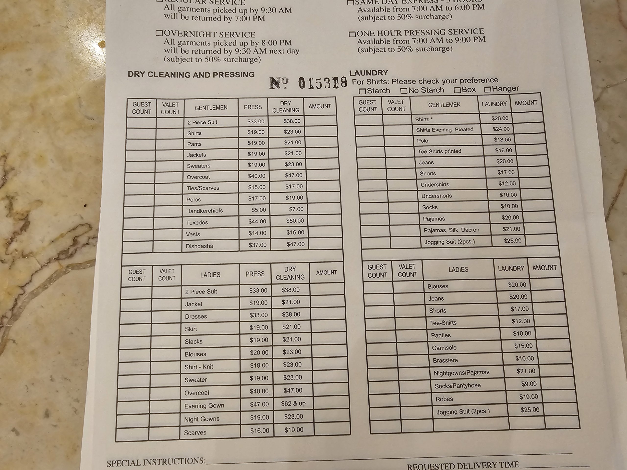 Natürlich können Sie auch laundry service nutzen - Sie können alles mit einer Standard-Lieferzeit am nächsten Tag oder gegen einen Aufpreis am selben Tag waschen lassen.