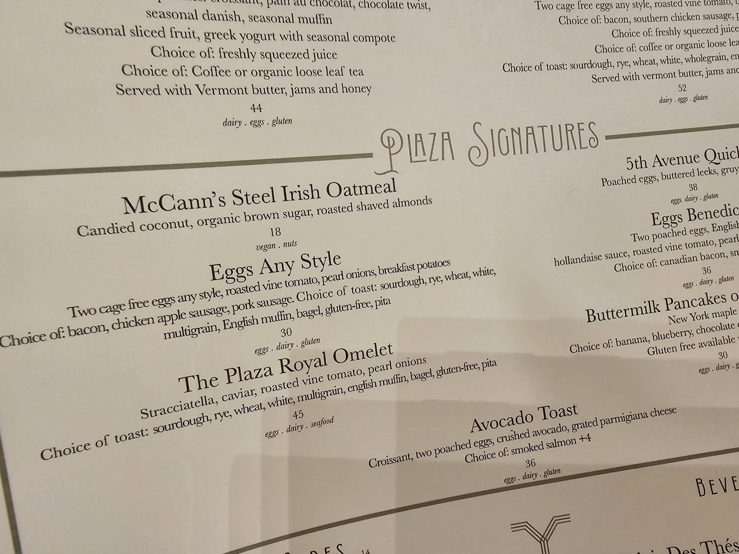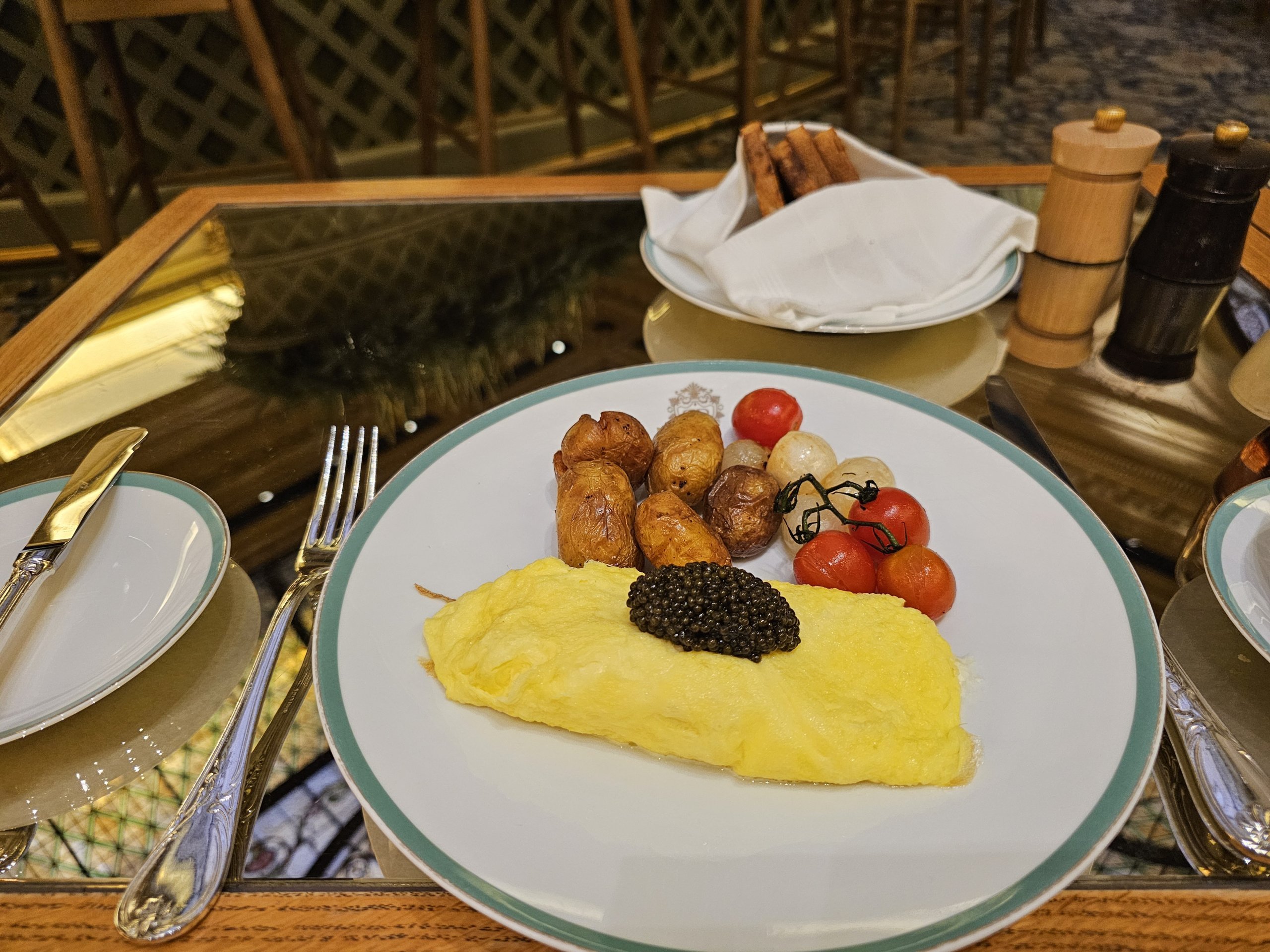 Das Frühstück wird sowohl im Palm Court als auch in der Champagne Bar serviert - man kann an beiden Orten die gleichen Speisen bestellen.