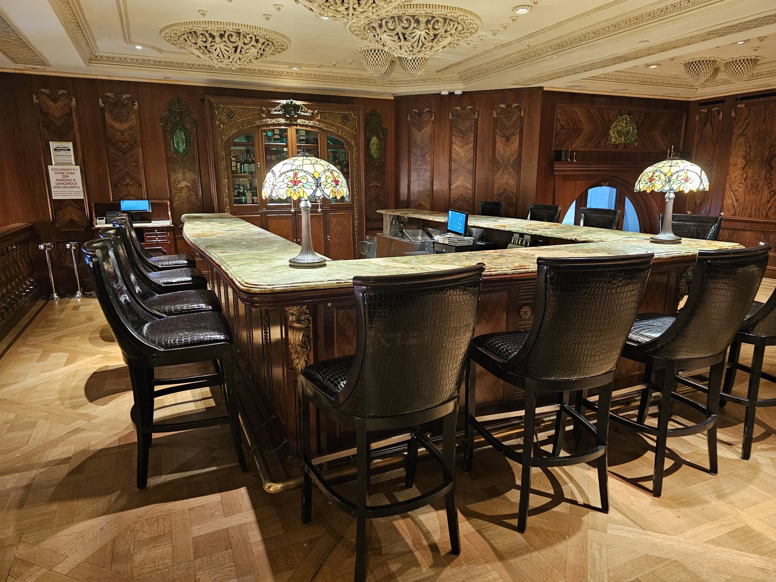 Am ersten Abend lösen wir die kostenlosen Getränkegutscheine ein, die wir beim Einchecken erhalten, und gehen stilvoll auf ein Glas Champagner in die Champagne Bar.