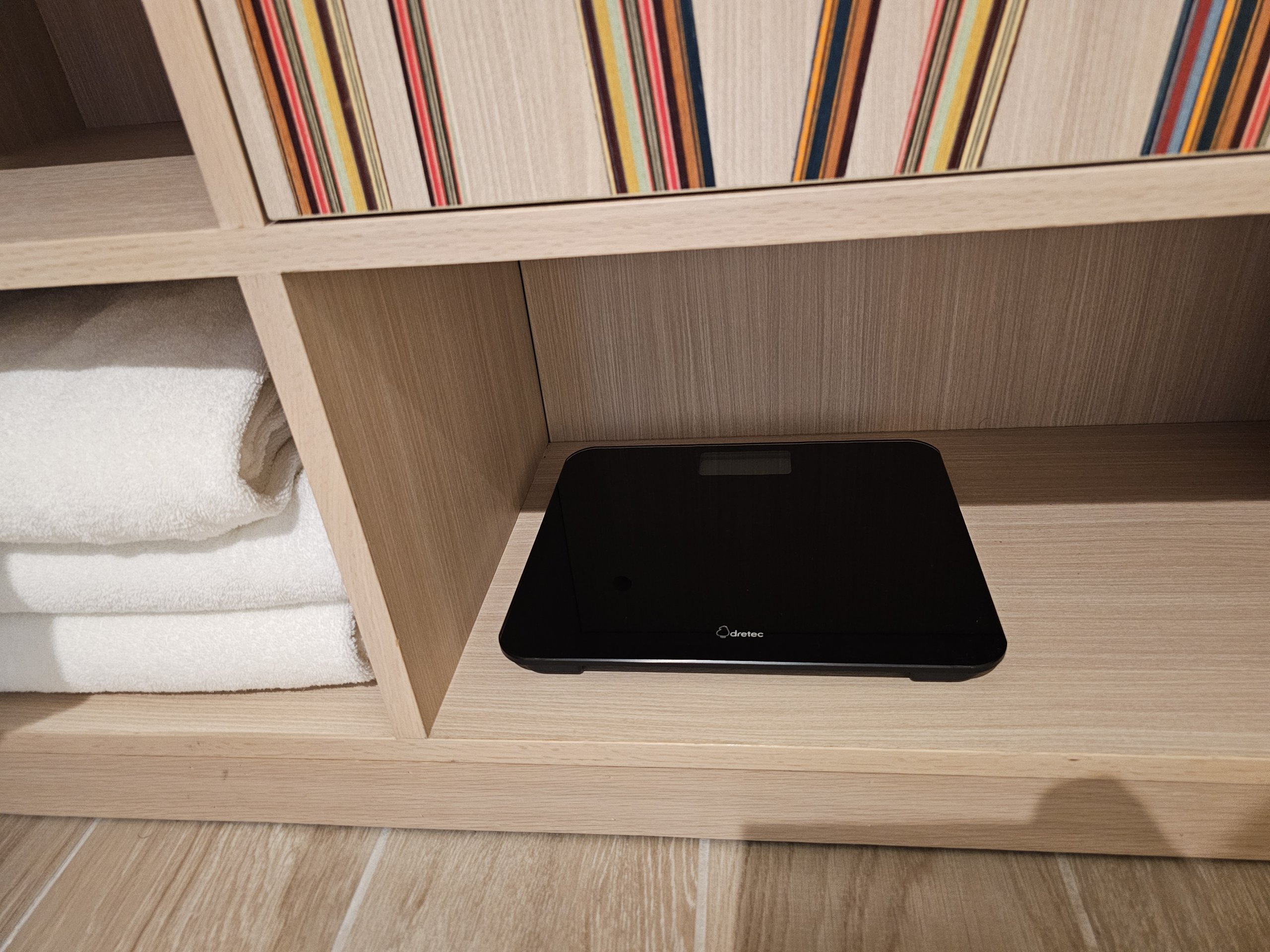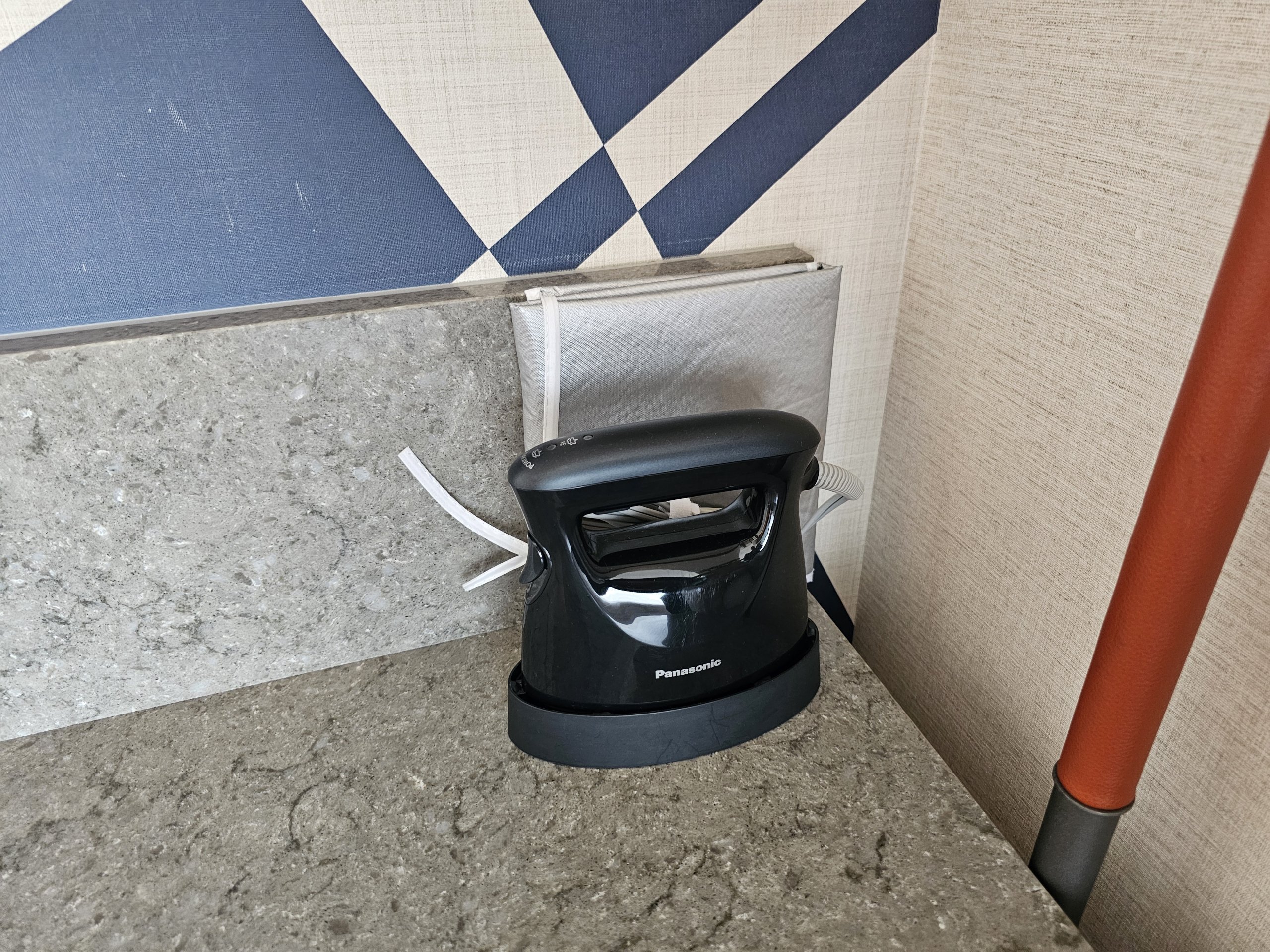 Steckdosen mit USB-A- und USB-C-Anschlüssen befinden sich sowohl am Bett als auch an der Theke mit der Kaffeemaschine. Das einzige, was mich ein wenig stört, ist die Klimaanlage, die sich nur im Eingangsbereich und nicht direkt am Bett befindet.