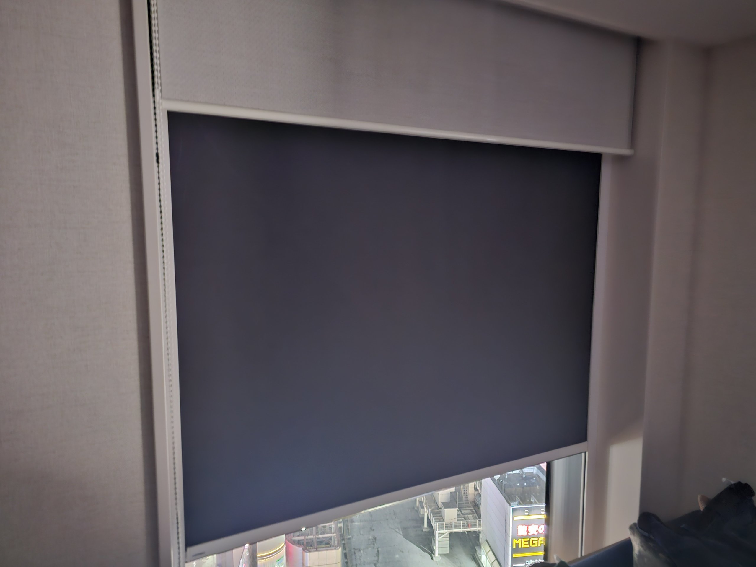 Da die Skyline von Tokio die ganze Nacht hindurch leuchtet, bin ich ein wenig besorgt, wie dunkel das Zimmer sein wird. Alle Fenster haben sowohl einen Sonnenschutz als auch eine 100%ige Verdunkelung, so dass das Zimmer in der Nacht völlig dunkel ist.