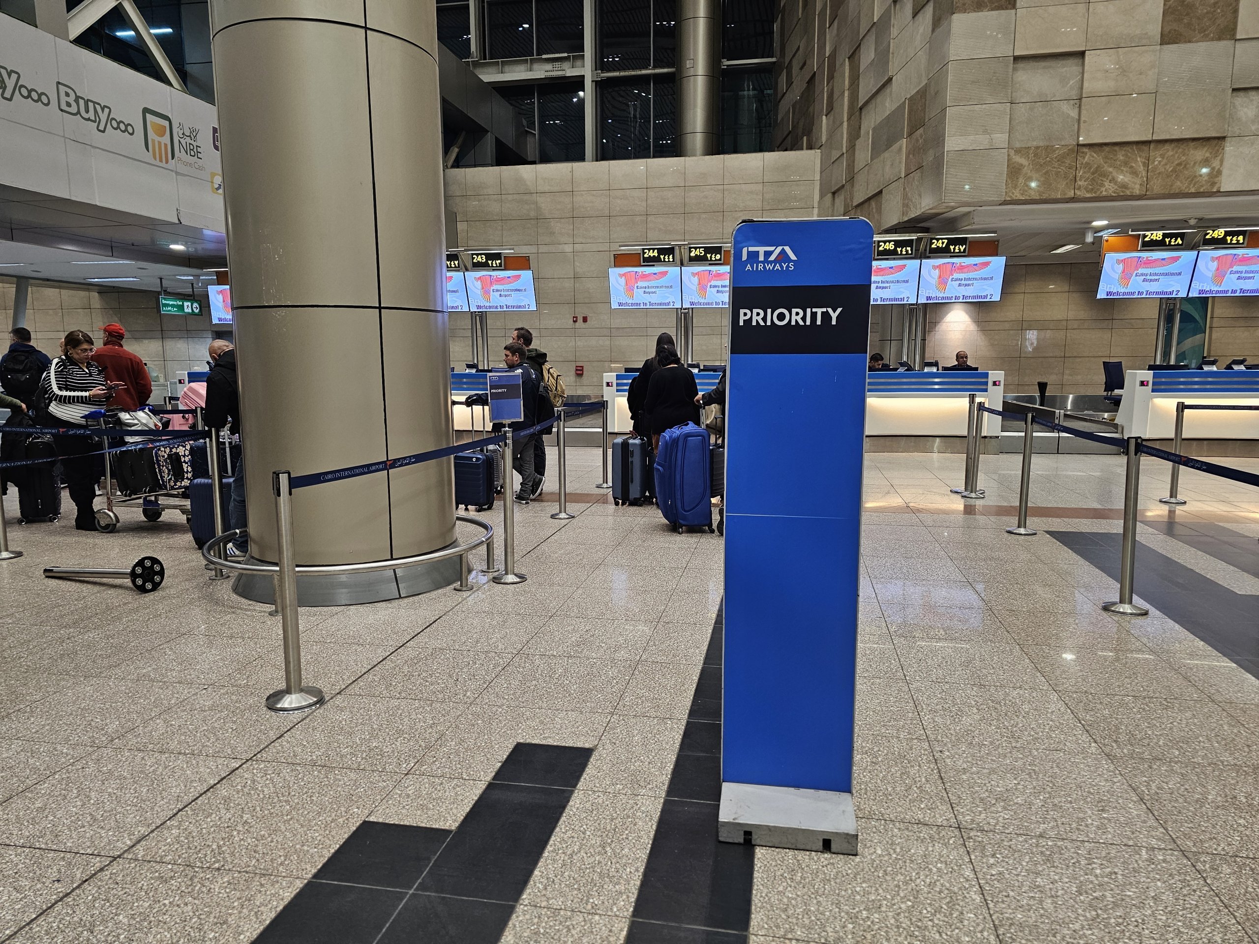 Ich checke am Flughafen Kairo ein, wo ITA Airways 5 eigene Check-in-Schalter im Terminal 2 hat.