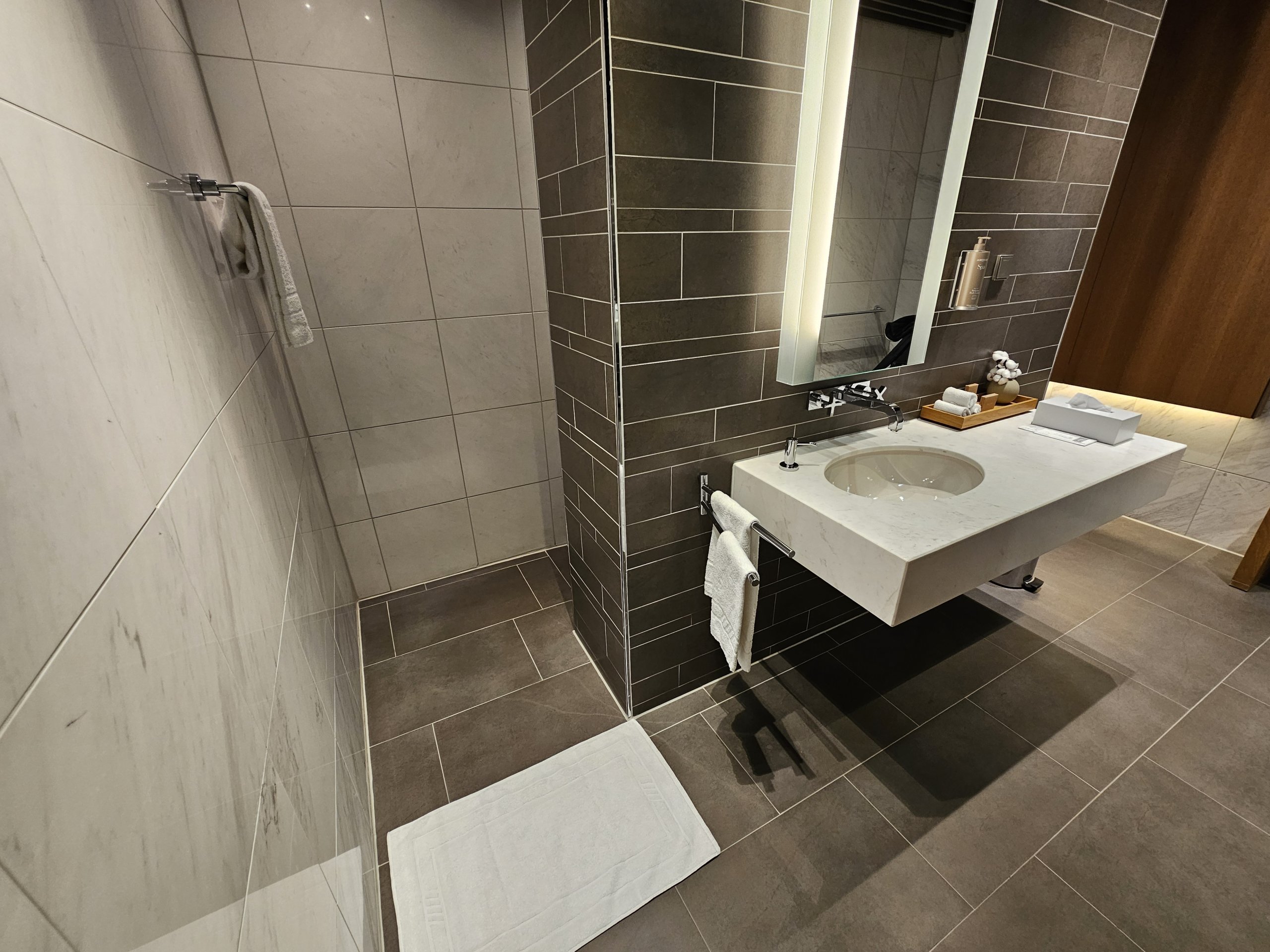 Nach einem langen 14-stündigen Flug kommt eine große, saubere Dusche gerade recht.