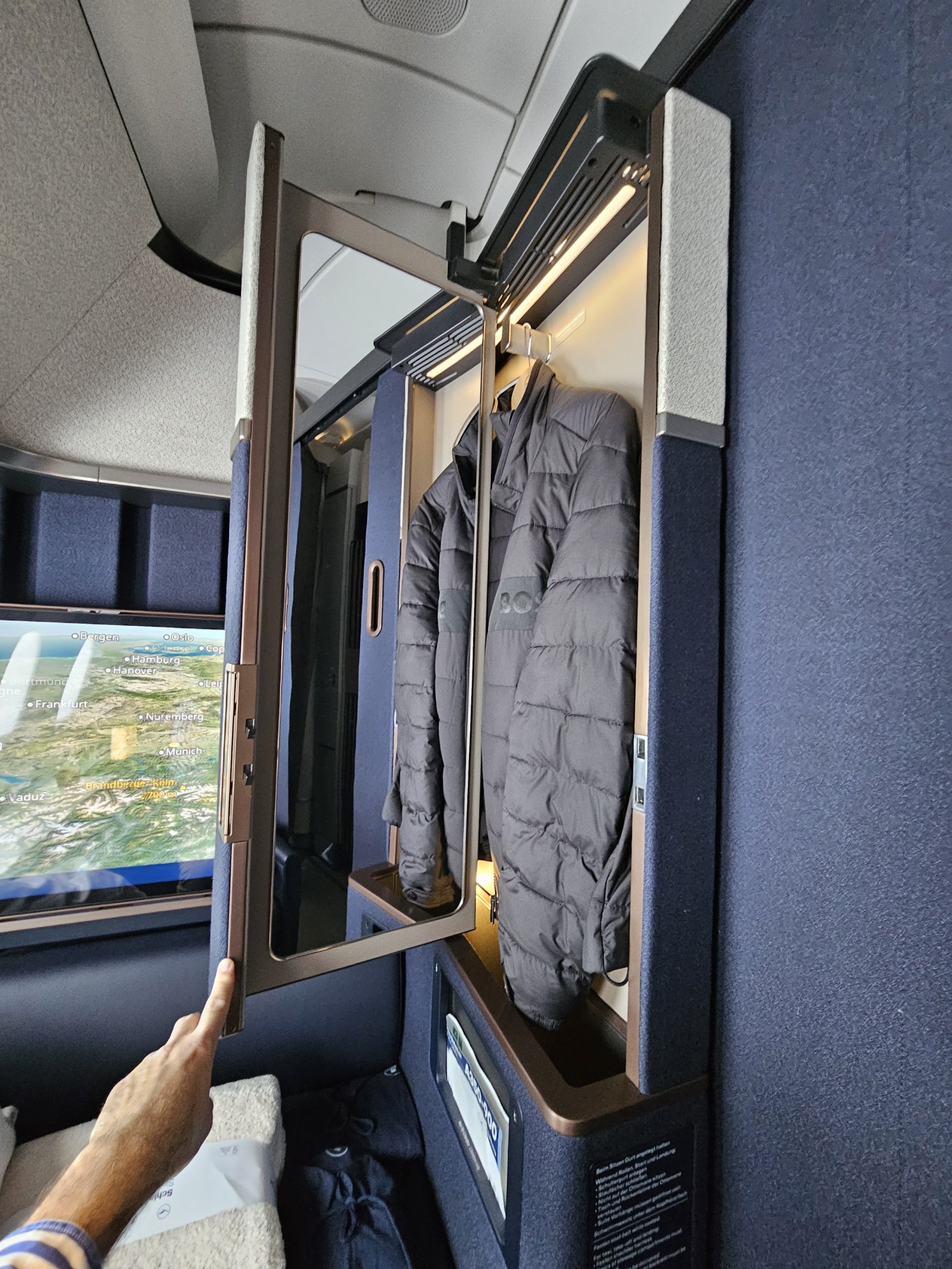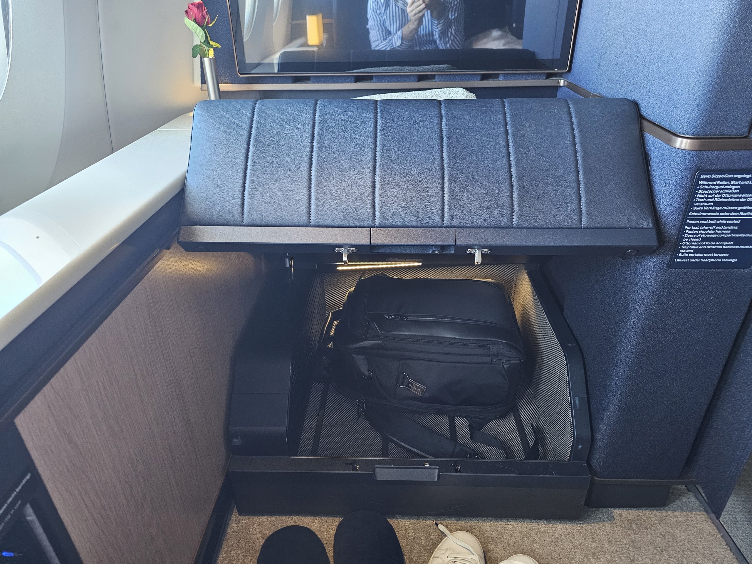 Im Vergleich zu den Sitzen in der alten First Class gibt es etwas weniger Stauraum. Allerdings ist er immer noch relativ ausreichend.