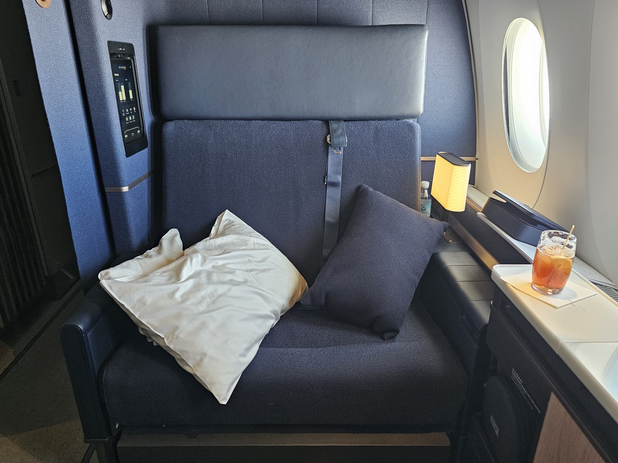 Das Design ist auf Deutsch eher nüchtern, aber für mich sehr elegant! Sicher, die neue La Premiere von Air France mag vom Design her witziger sein, aber auch hier gibt es keine Tür vom Boden bis zur Decke oder einen Sichtschutz, was für mich in der First Class absolut unerlässlich ist.