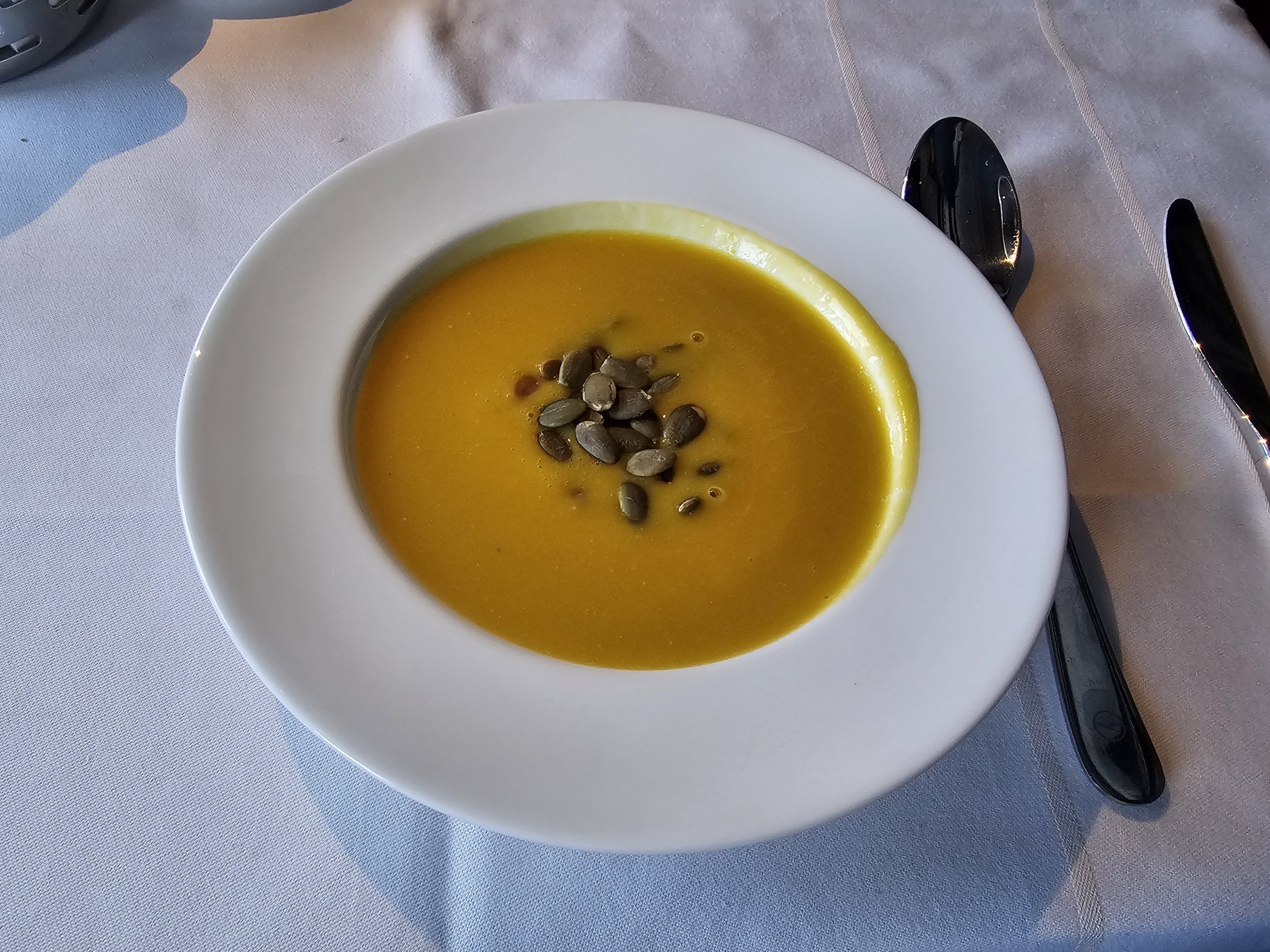 Vor dem Essen gibt es eine tolle Kürbis-Ingwer-Suppe.