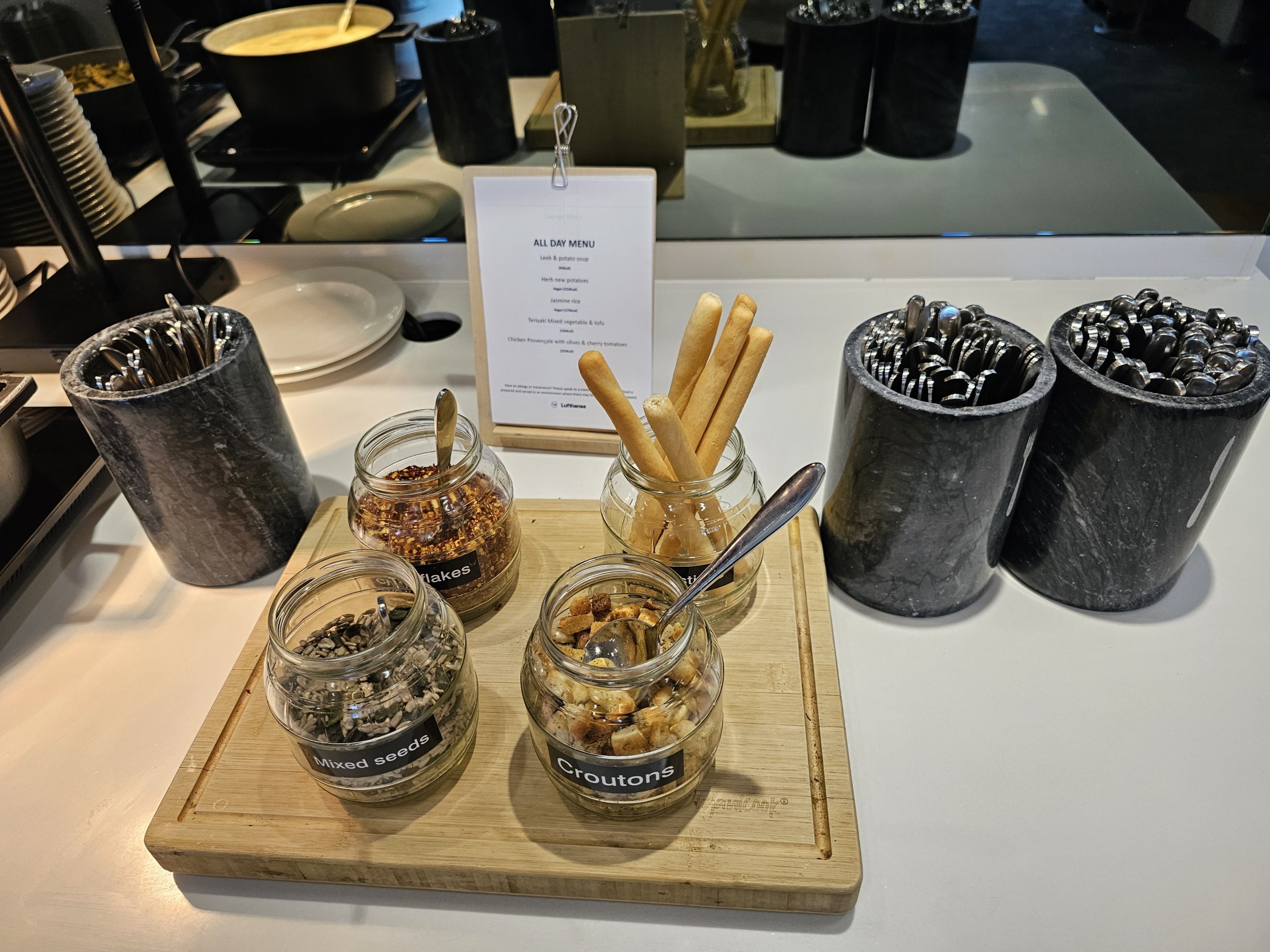 Das Essen ist jedoch schmackhaft und ernährungsphysiologisch ausgewogen, so dass ich eigentlich zufrieden war. Für eine Lounge, in die nur europäische Flüge gehen, ist die Auswahl ausreichend.