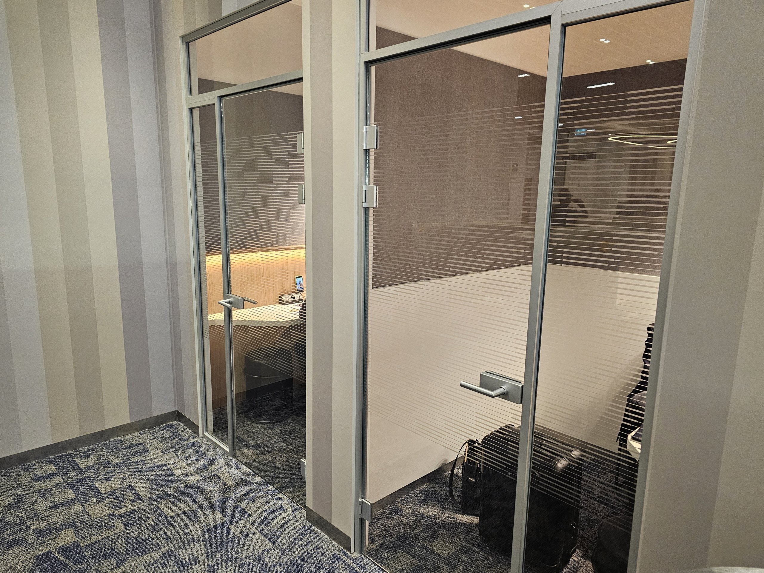 Für ungestörte Telefongespräche gibt es eine spezielle schallisolierte Kabine am Eingang, die nur für solche Fälle gedacht ist.
