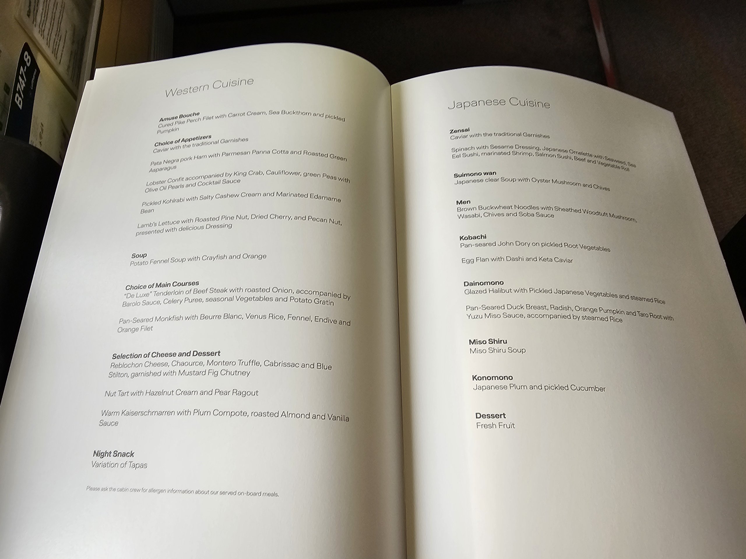 Der Bordservice ist in der alten und der neuen Allegris First Class gleich und unterscheidet sich nur darin, ob man einen Nacht- oder einen Tagesflug hat.