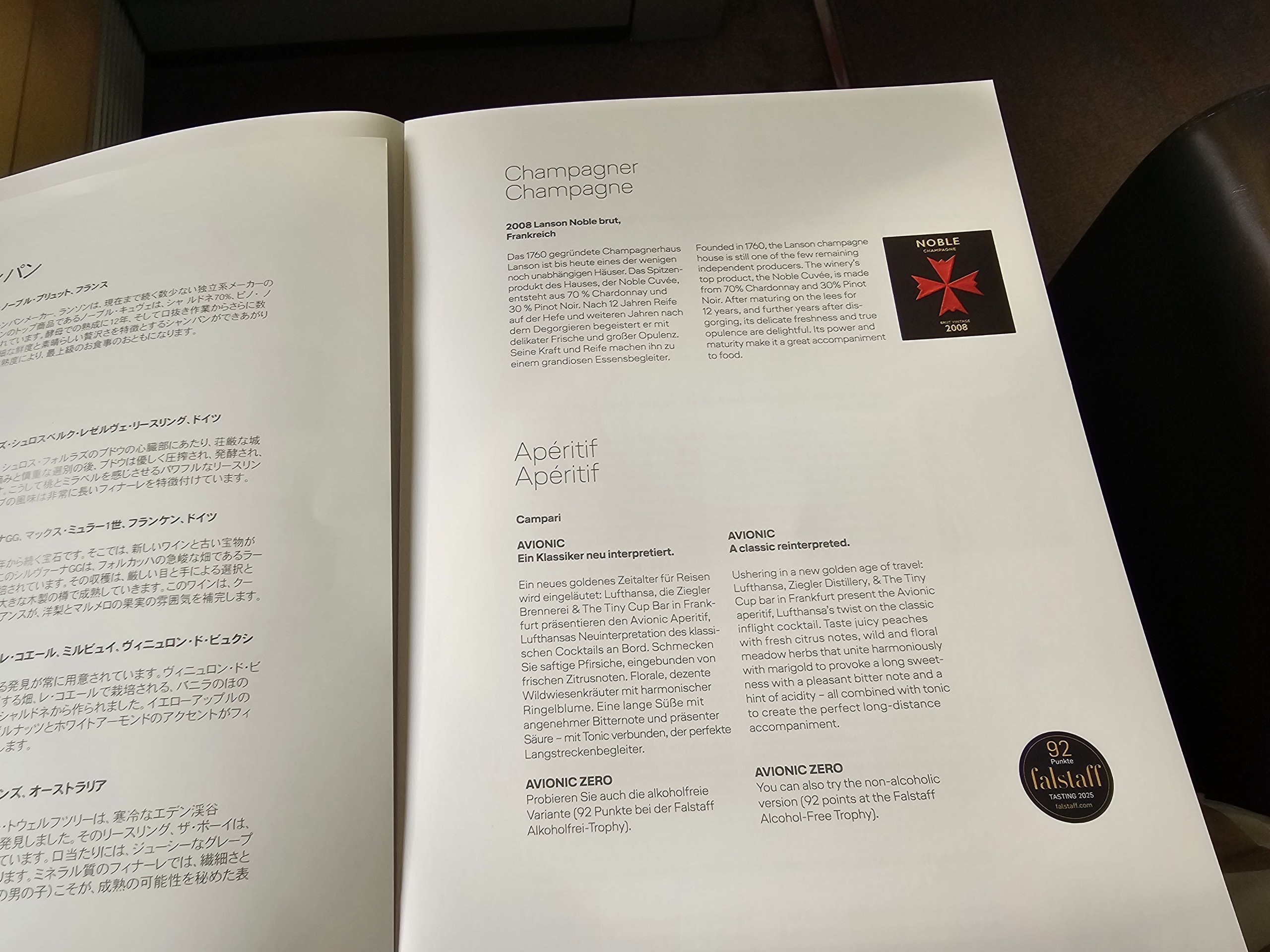 Vor der Hauptmahlzeit trinke ich meinen Lieblingscocktail der Lufthansa - den Avionic.