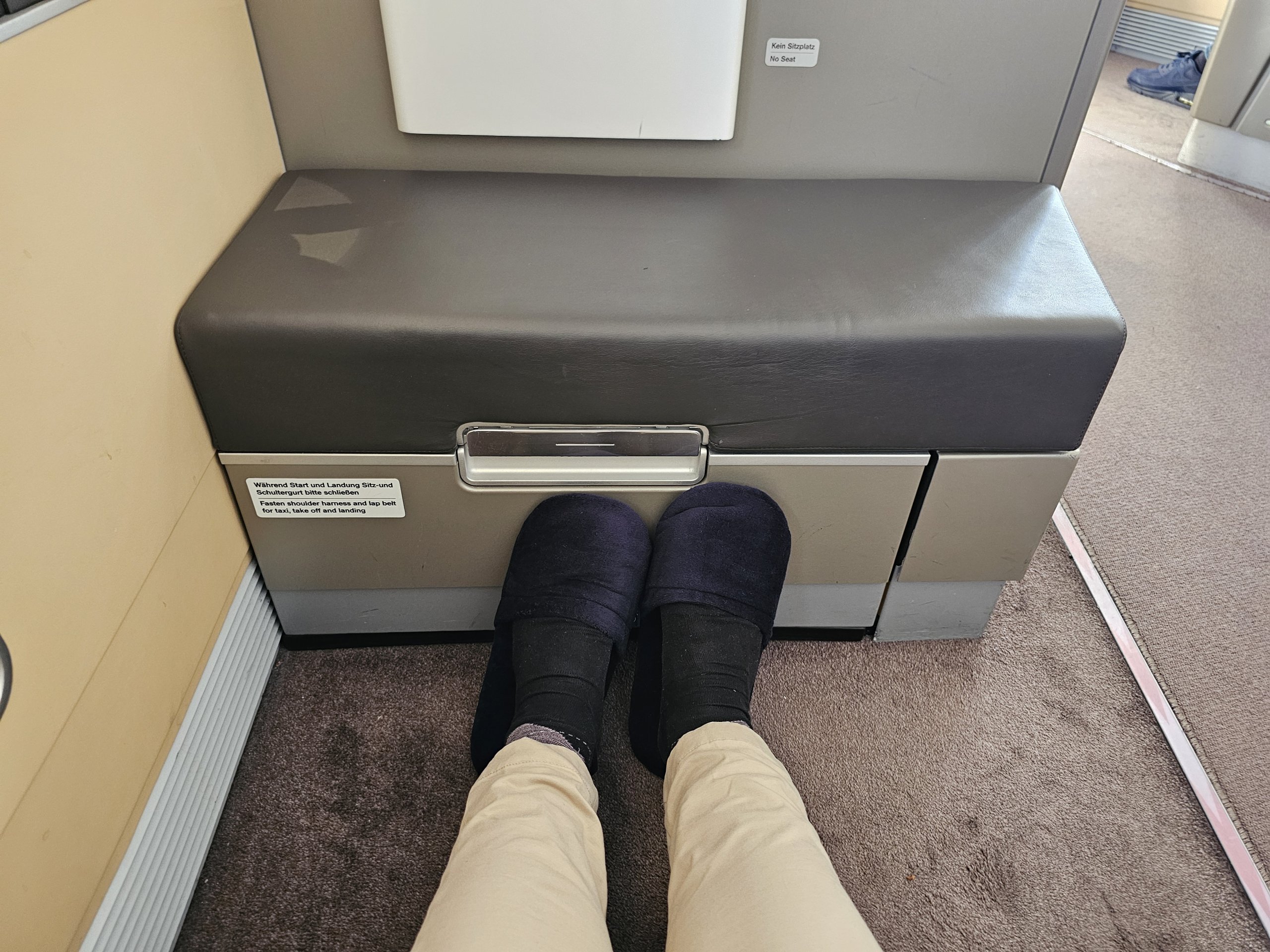 Im Nachhinein bedauere ich diese Wahl allerdings ein wenig. Die Sitze 2A und 2K sind zwar am weitesten von allen anderen entfernt, aber sie befinden sich direkt neben dem Schalter, an dem die Crew bedient wird.