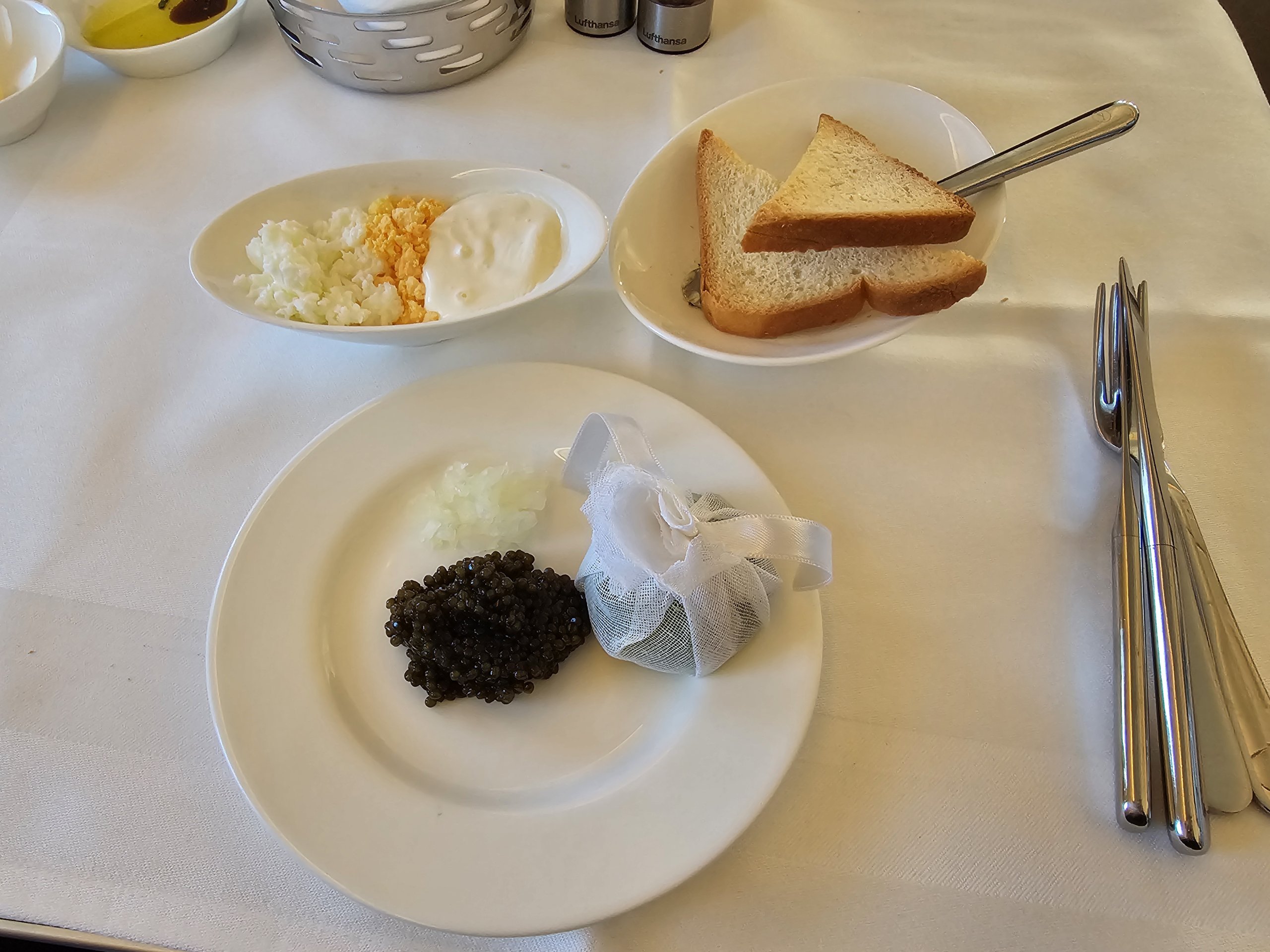 Noch vor dem Hauptservice kommt der Kaviar - das typische First Class-Produkt der Lufthansa. Der Kaviarservice ist bei dieser Fluggesellschaft einfach ein Konzept, das allen Stammgästen und Flugbegeisterten vertraut ist.
