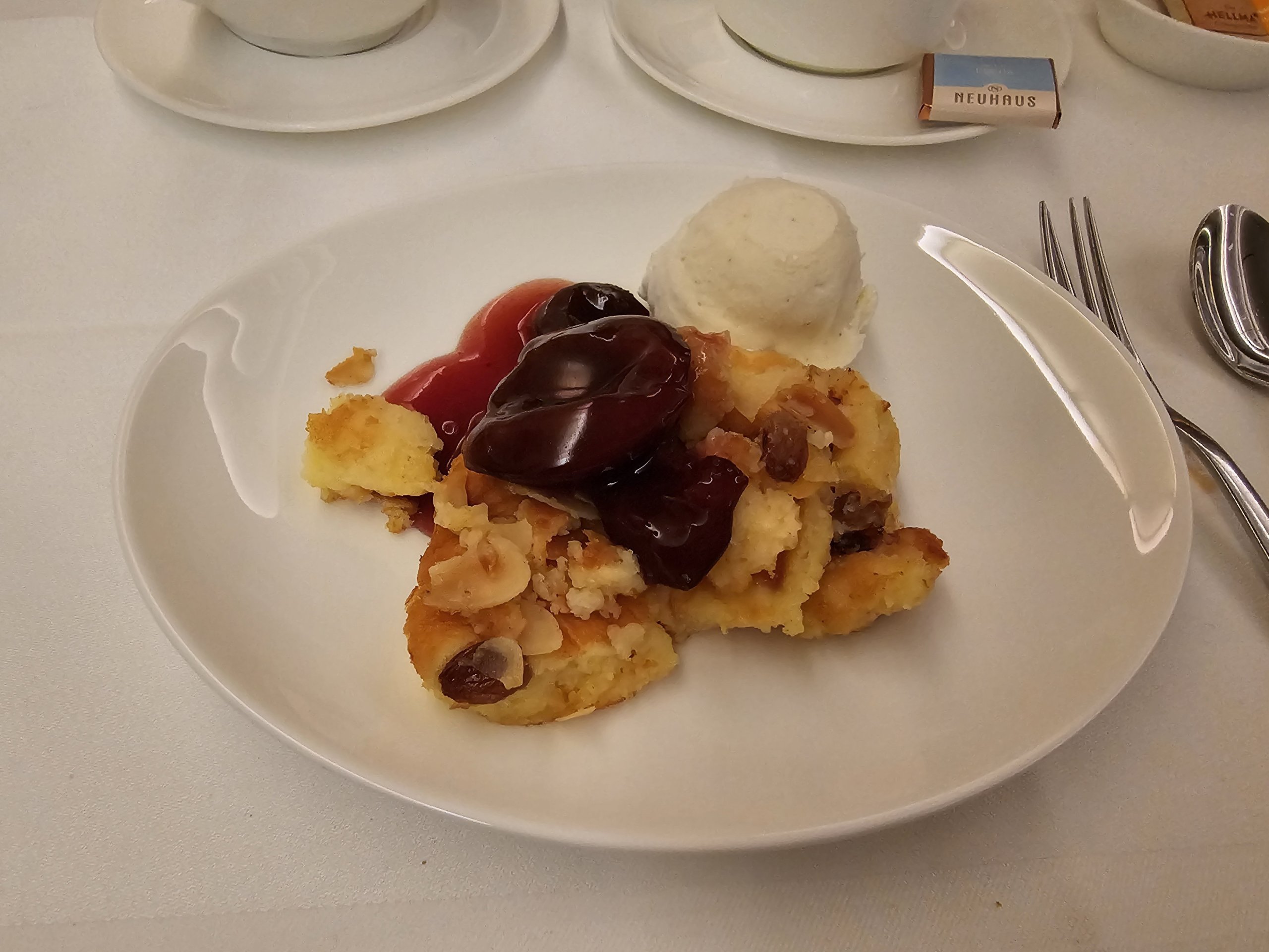 Ich liebe den traditionellen deutschen Kaiserschmarren. Hier bekomme ich ihn mit Pflaumensauce und einem fabelhaften Vanilleeis. Ich glaube nicht, dass ich jemals einen besseren Caesar-Cracker gegessen habe.