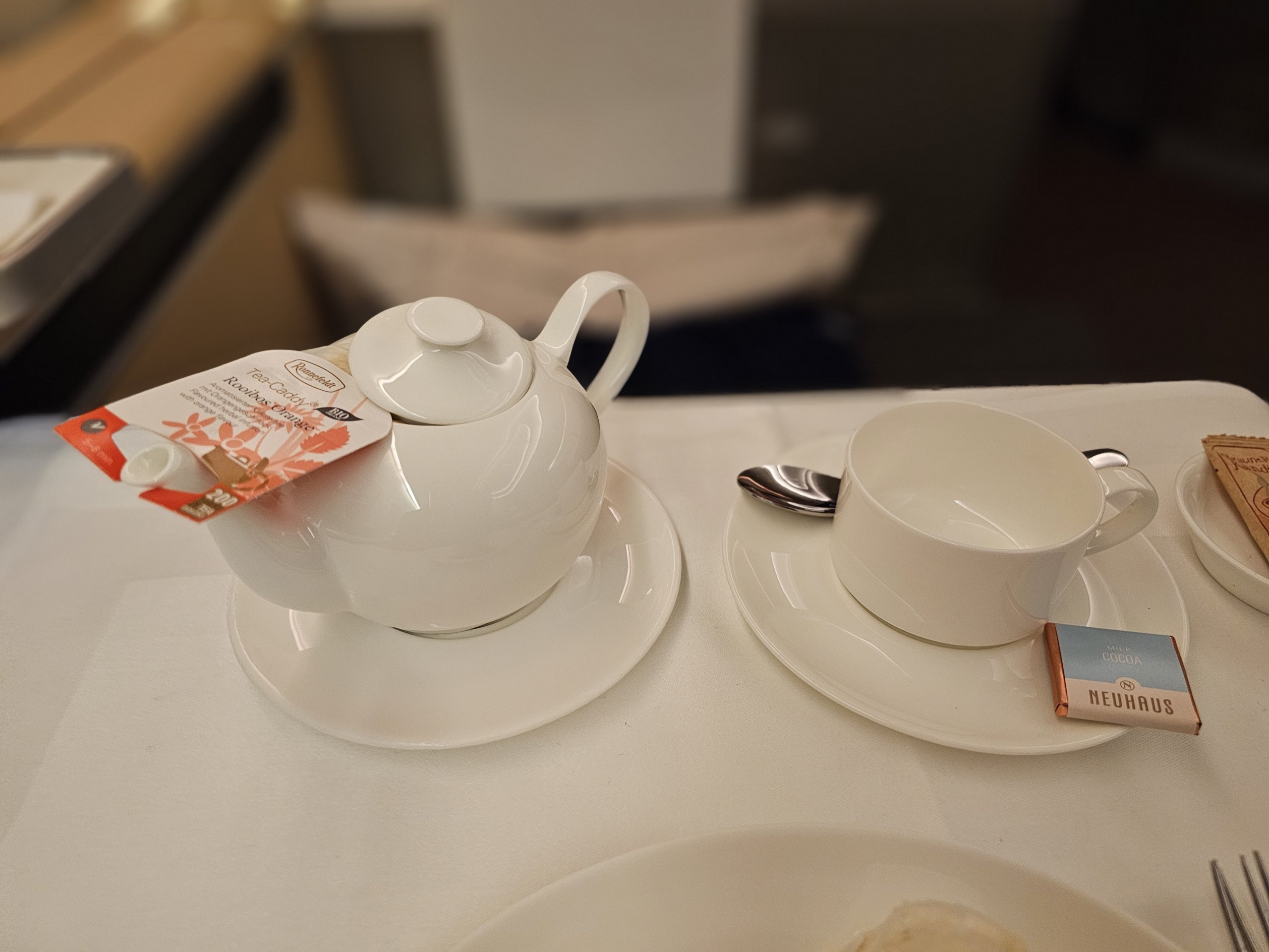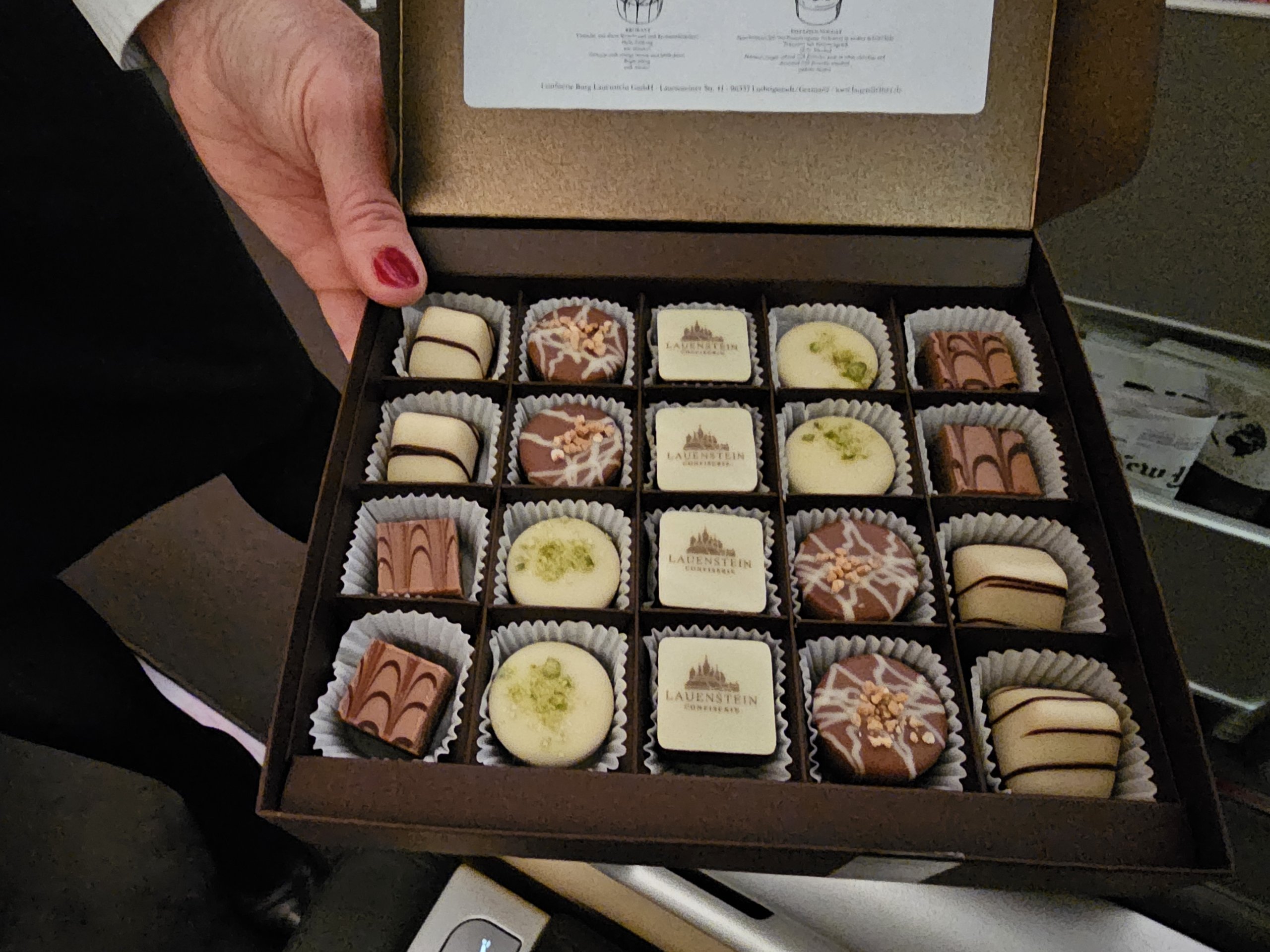 Als letzten Nachtisch gibt es Pralinen, die es bei Lufthansa immer fabelhaft gibt.