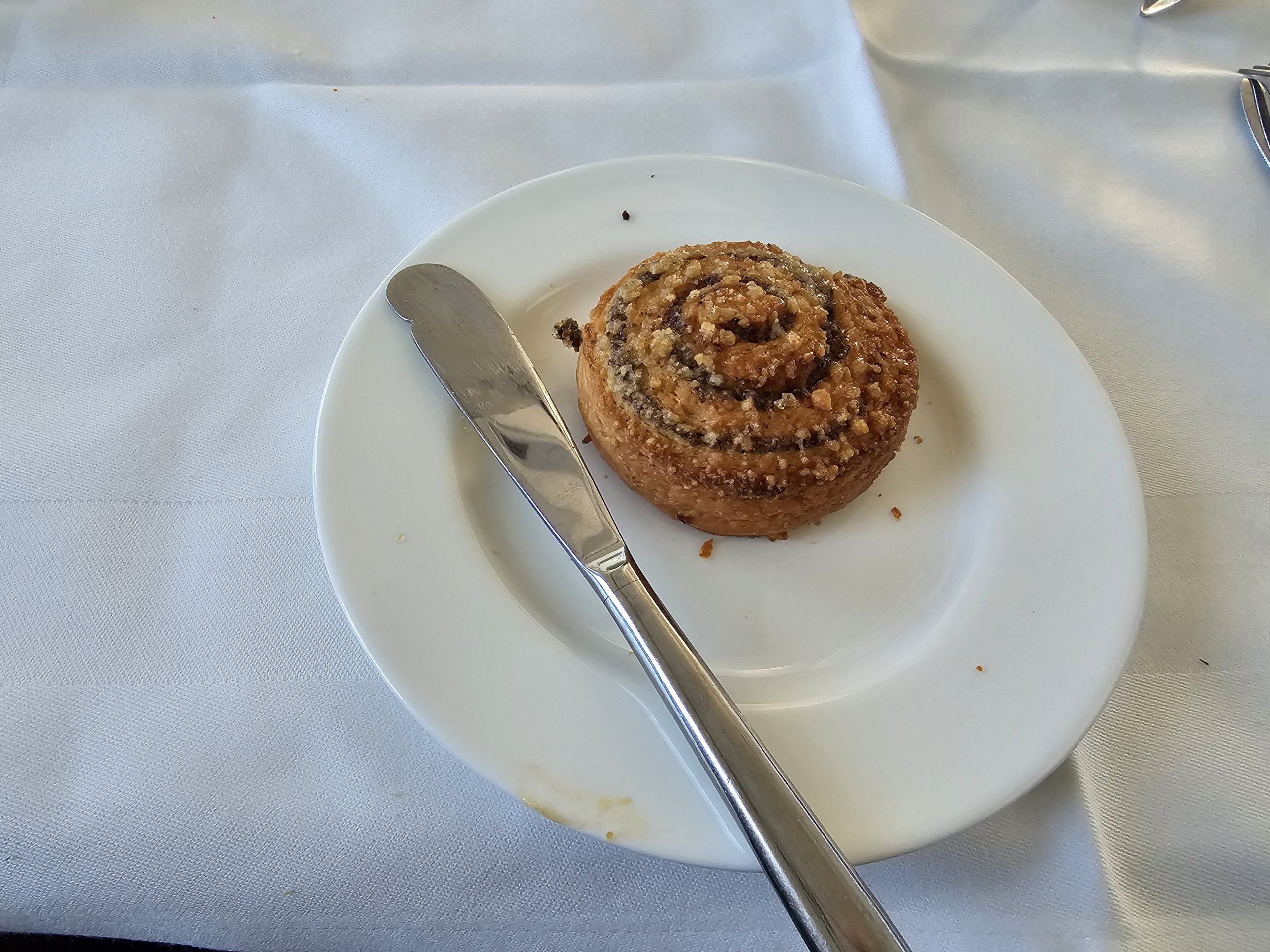 Um es nicht ganz so gesund zu machen, esse ich nach dem Frühstück eine Zimtschnecke.