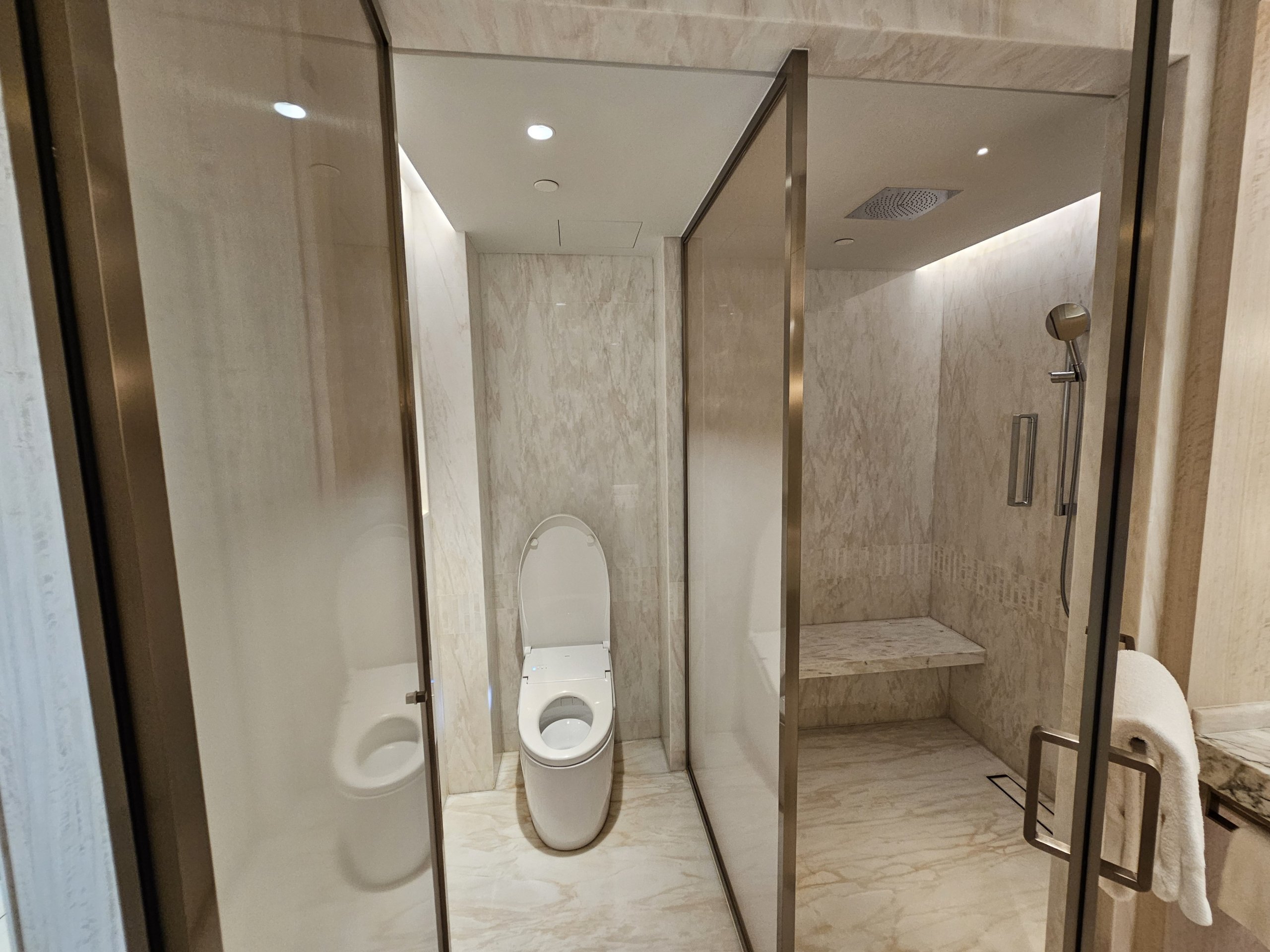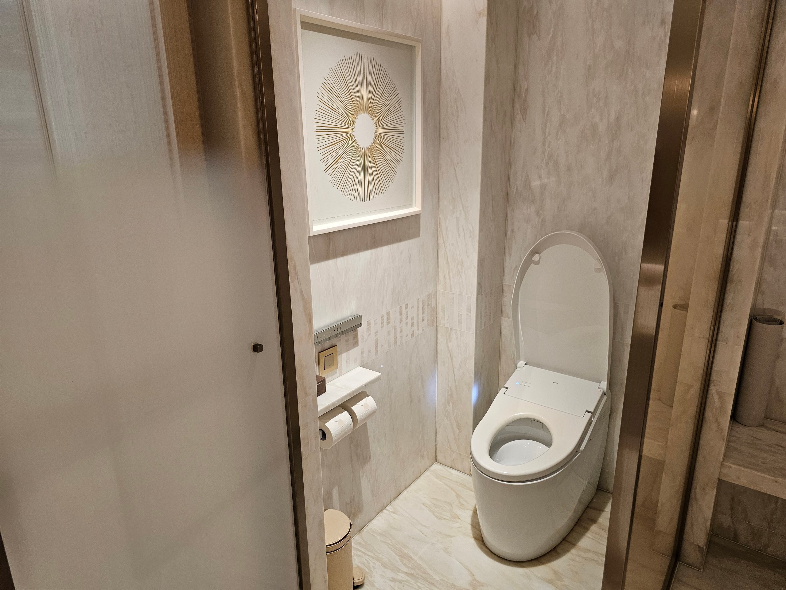 - Toilette durch eine Tür abgetrennt (und mit vielen Funktionen)