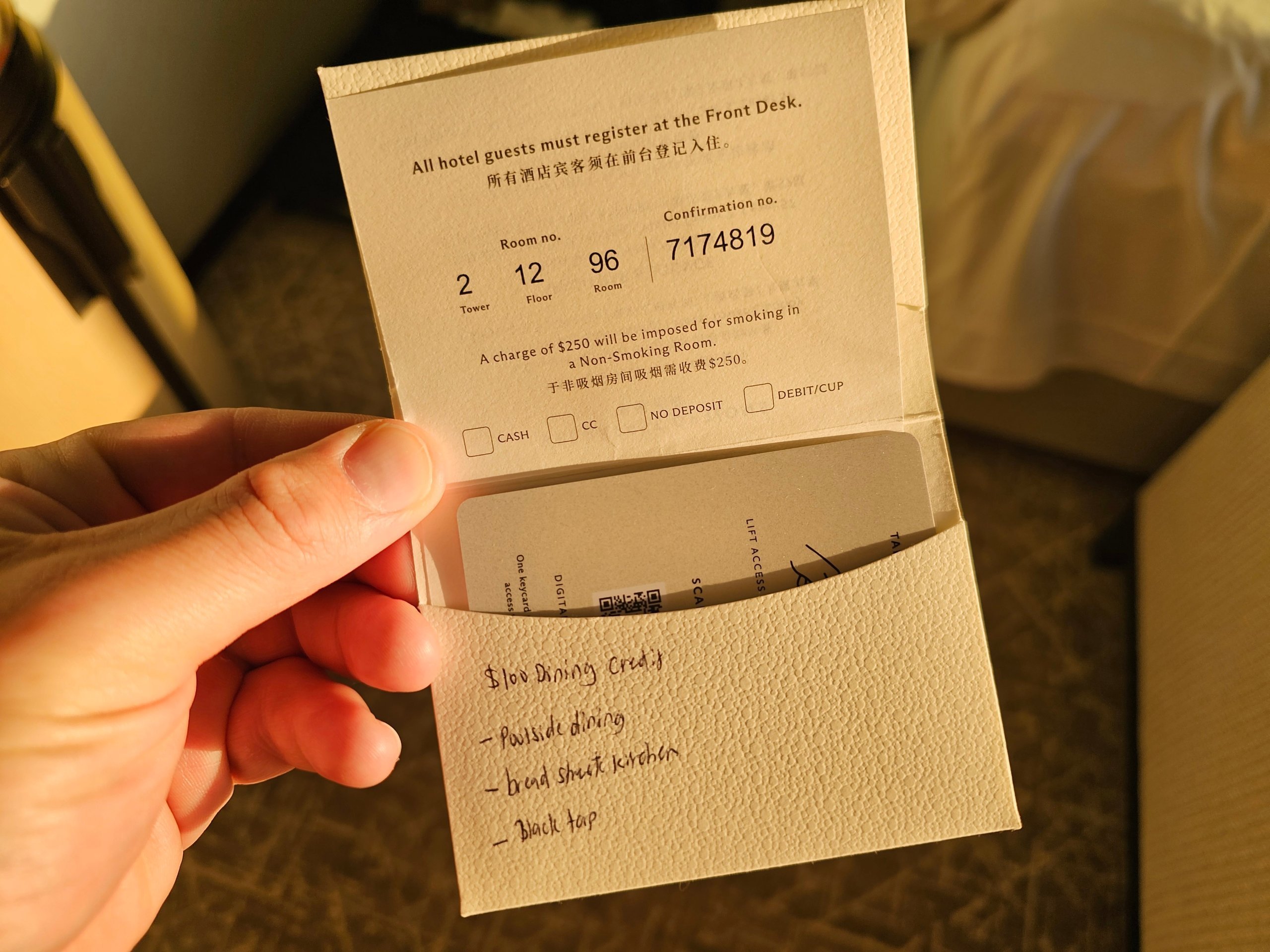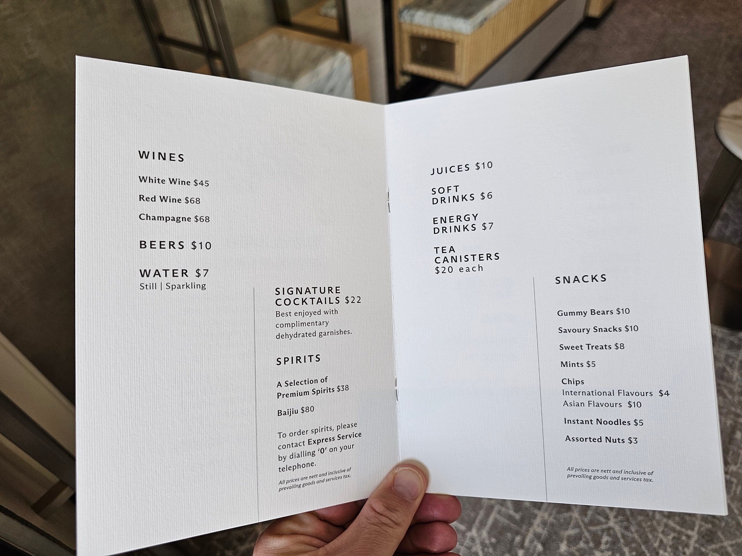Darin enthalten war ein Guthaben von 100 sgd, das wir in ausgewählten Bars und Restaurants des Hotels ausgeben konnten.