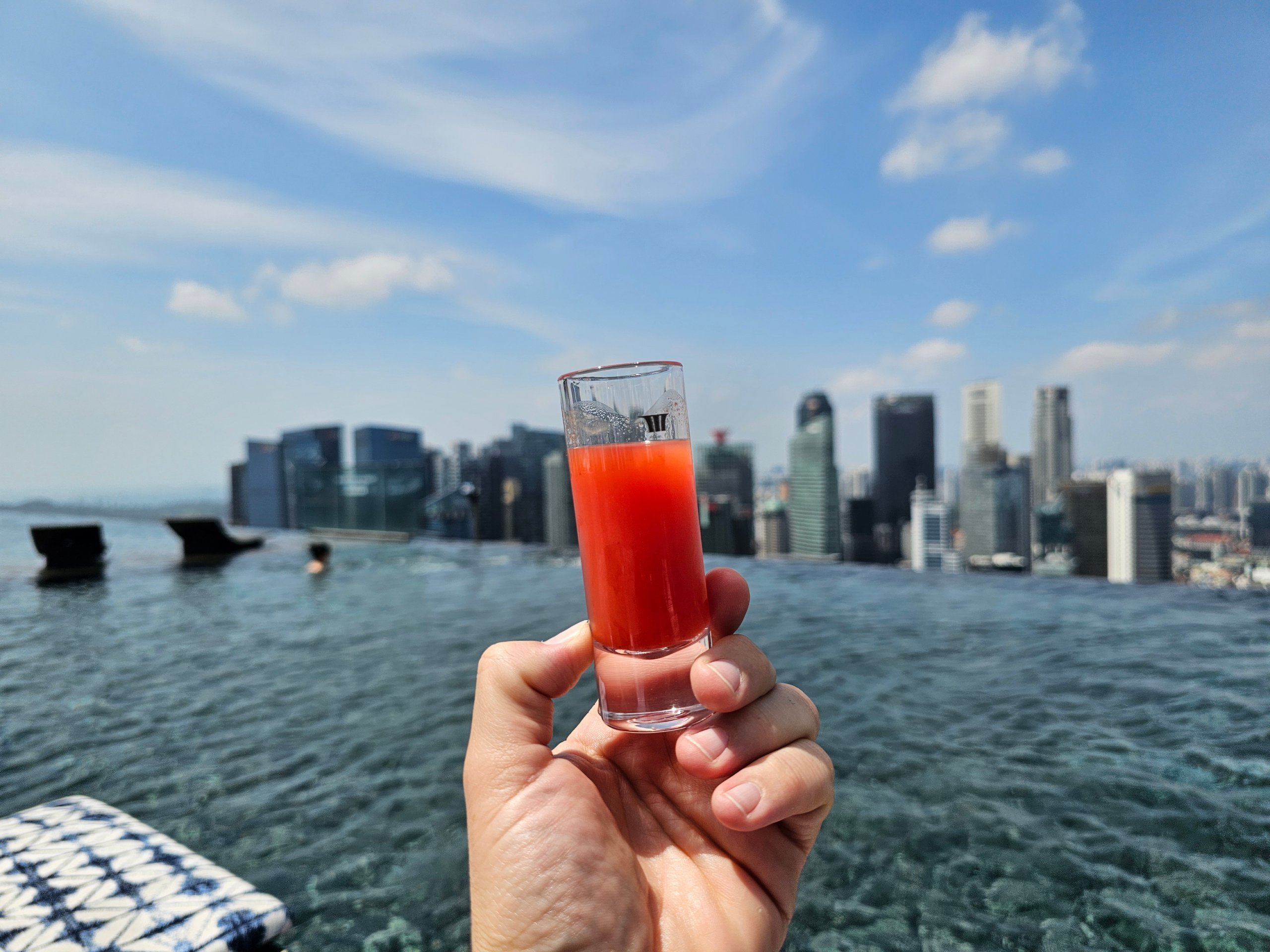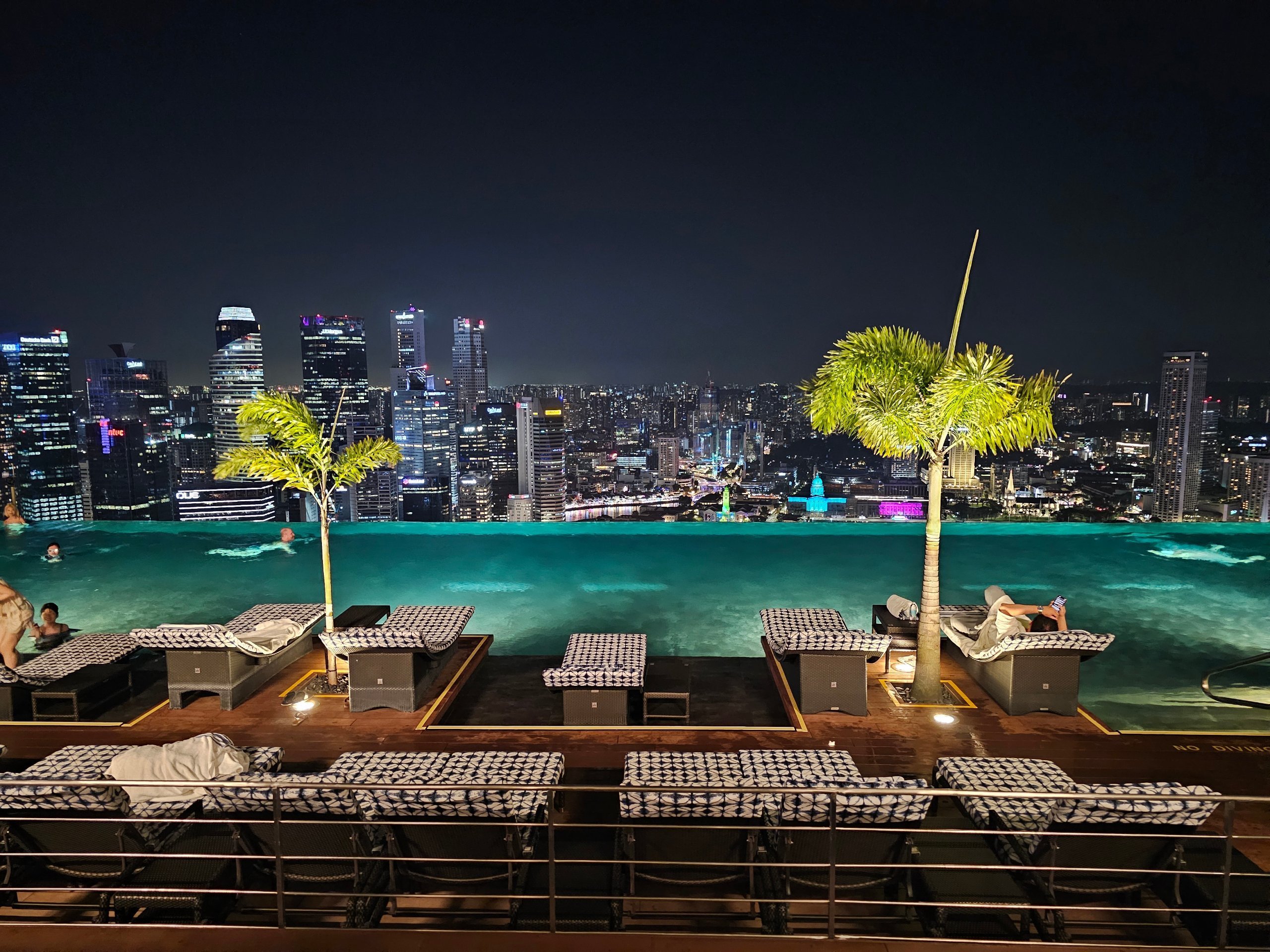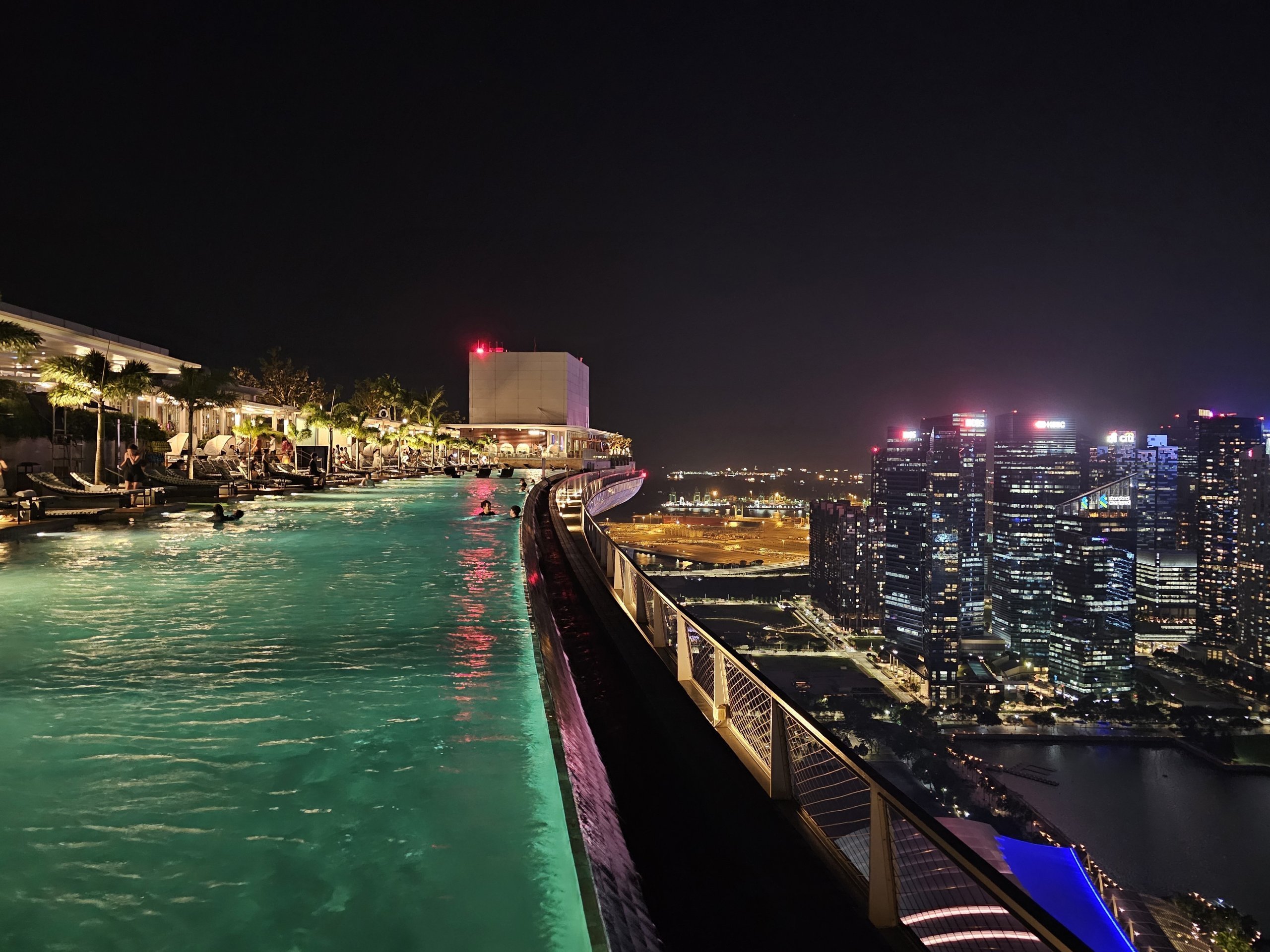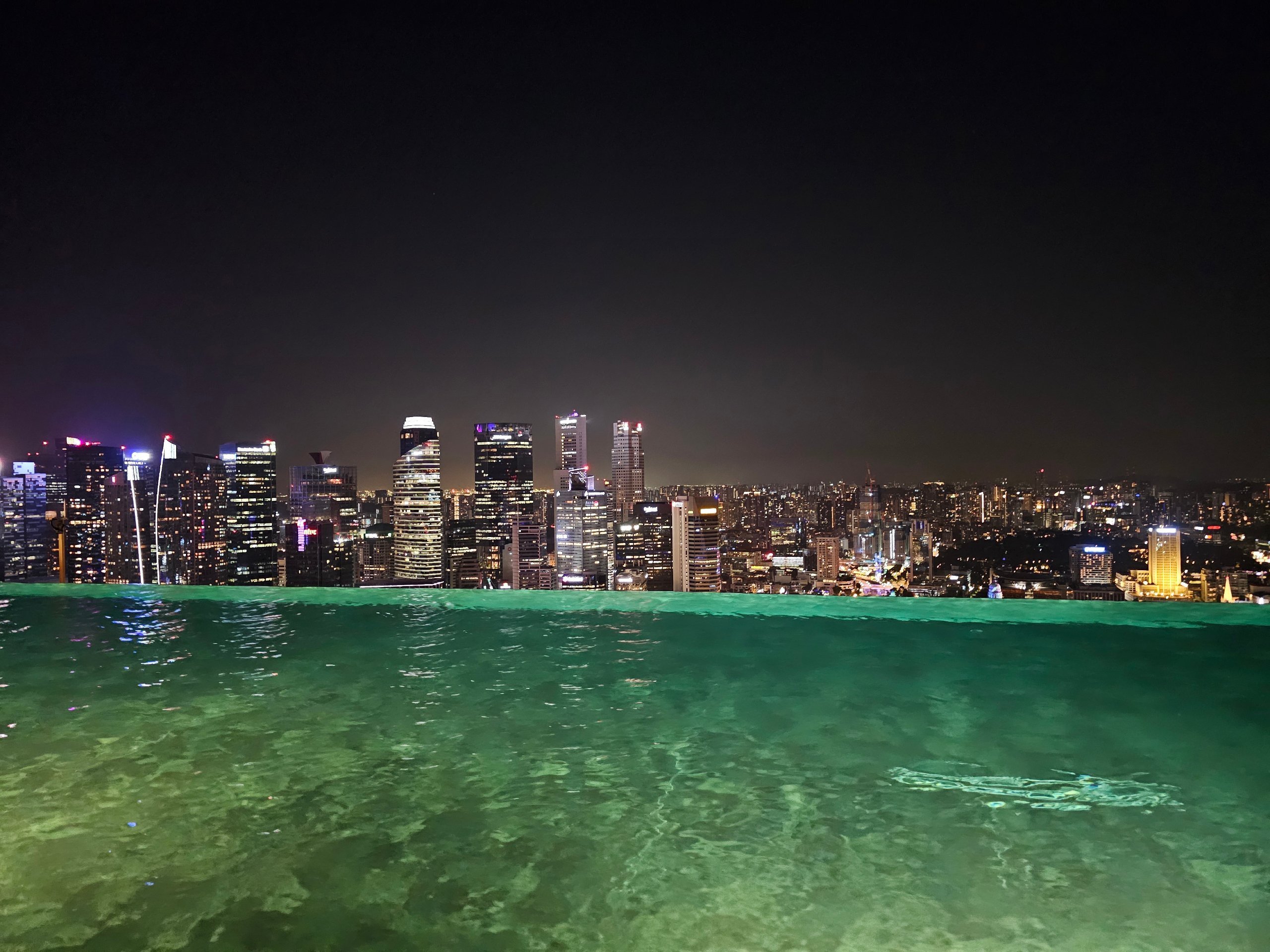Von der Länge des Pools aus liegt das Stadtzentrum von Singapur in Ihrer Handfläche. Und wenn Sie auf die andere Seite des Daches gehen, können Sie die Gardens by the Bay und Hunderte von Frachtschiffen im Hintergrund auf hoher See sehen.