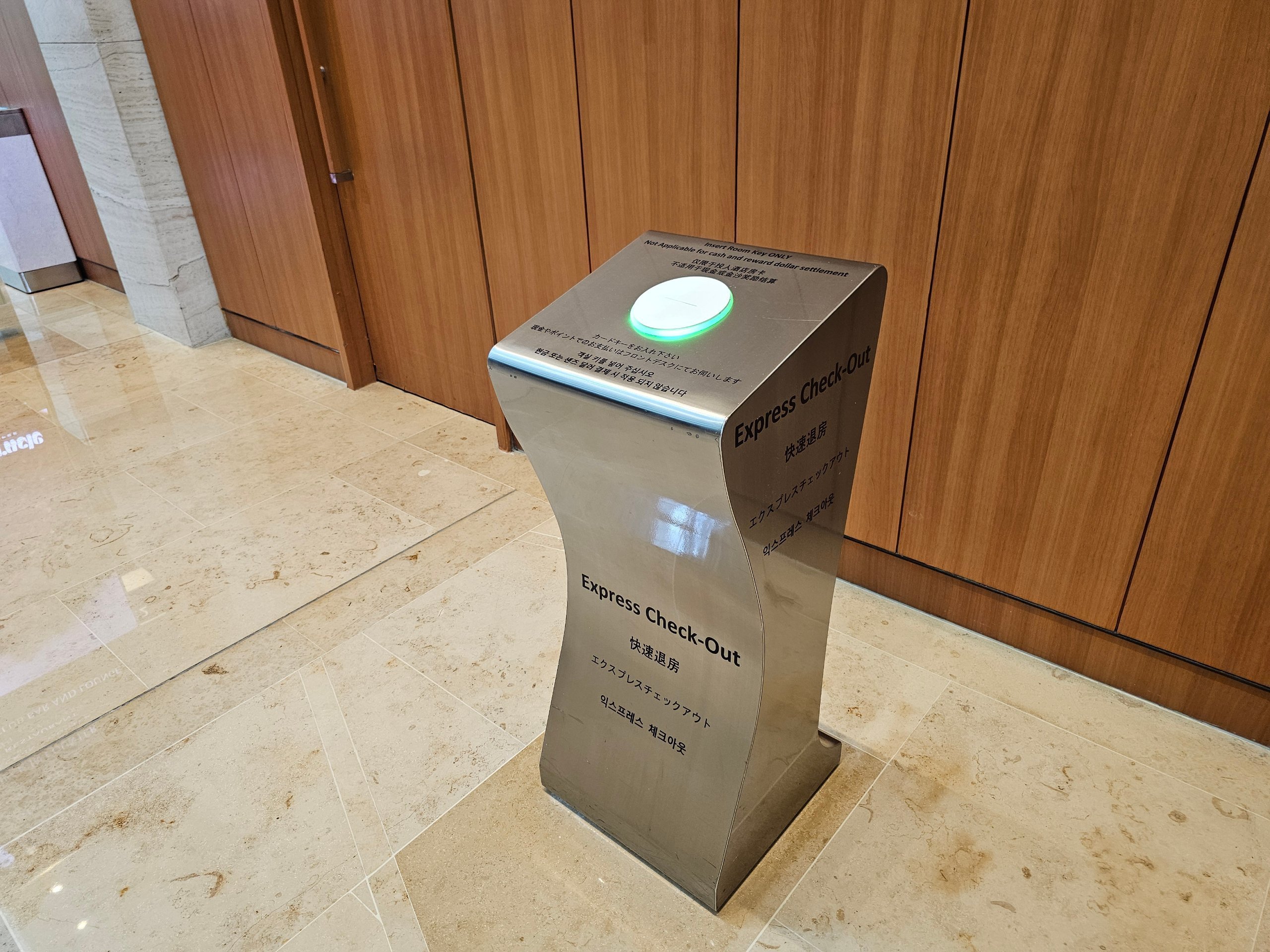Der Check-out geht sehr schnell und es gibt auch einen kontaktlosen Express-Check-out, bei dem man einfach seine Zimmerkarte in den Automaten steckt.