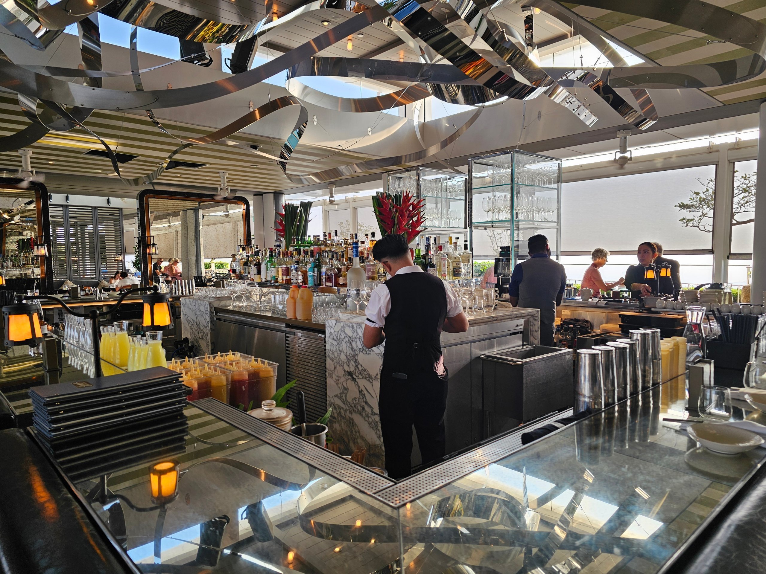 An der Spago Pool Bar können Sie jederzeit etwas bestellen oder sich per QR-Code an das allgegenwärtige Personal wenden.