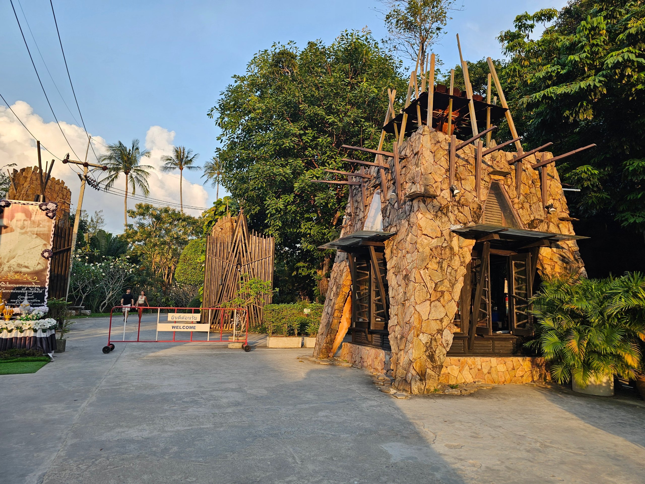Das Parken für Autos ist unten am Eingangstor kostenlos. Mit dem Roller kann man bis zur Rezeption fahren, die sich ungefähr in der Mitte des gesamten Geländes befindet.
