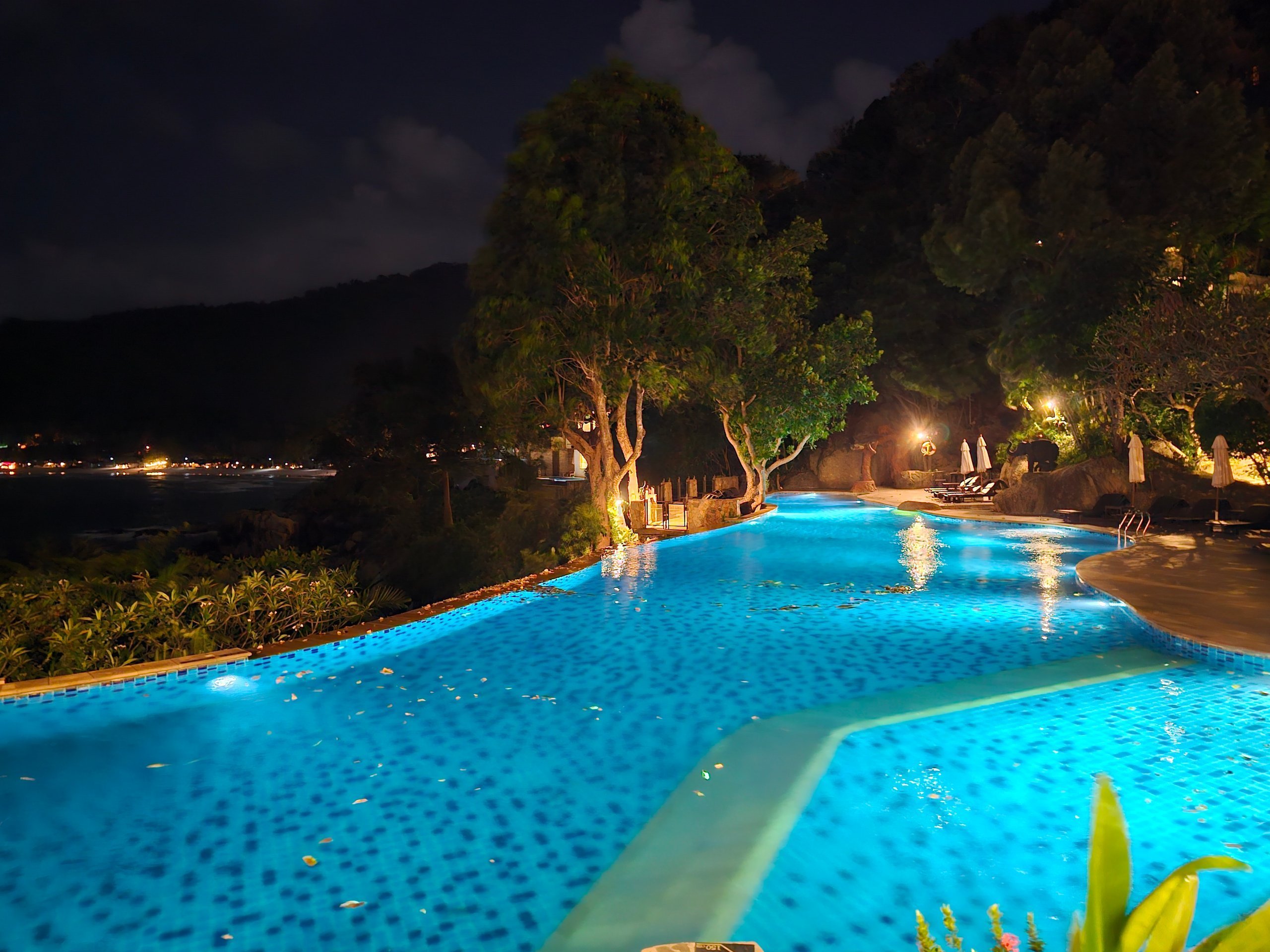 In der Mitte des Geländes unterhalb des Frühstücksrestaurants befindet sich ein großer öffentlicher Pool mit Aussicht. Schön, hat aber das gleiche Problem wie die Pools in den einzelnen Villen - sehr kaltes Wasser!