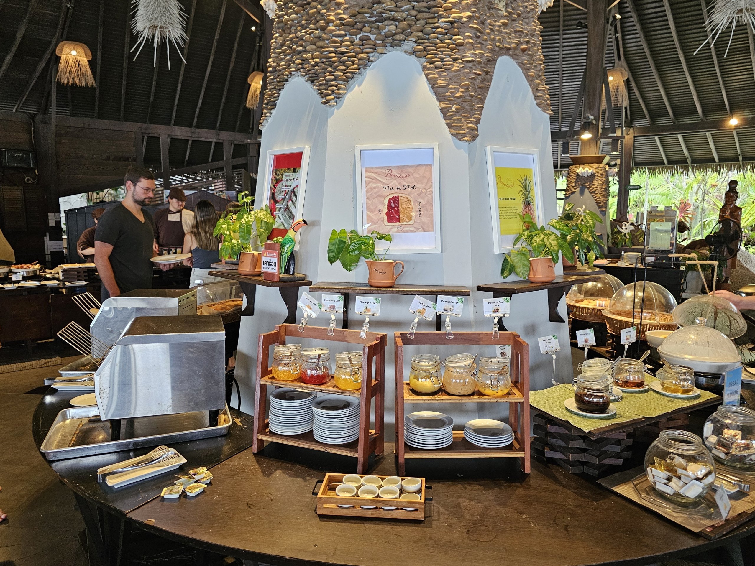 Das Frühstück im Panviman Resort Koh Phangan findet im Hauptrestaurant auf dem Hügel mit Blick auf das Meer statt.