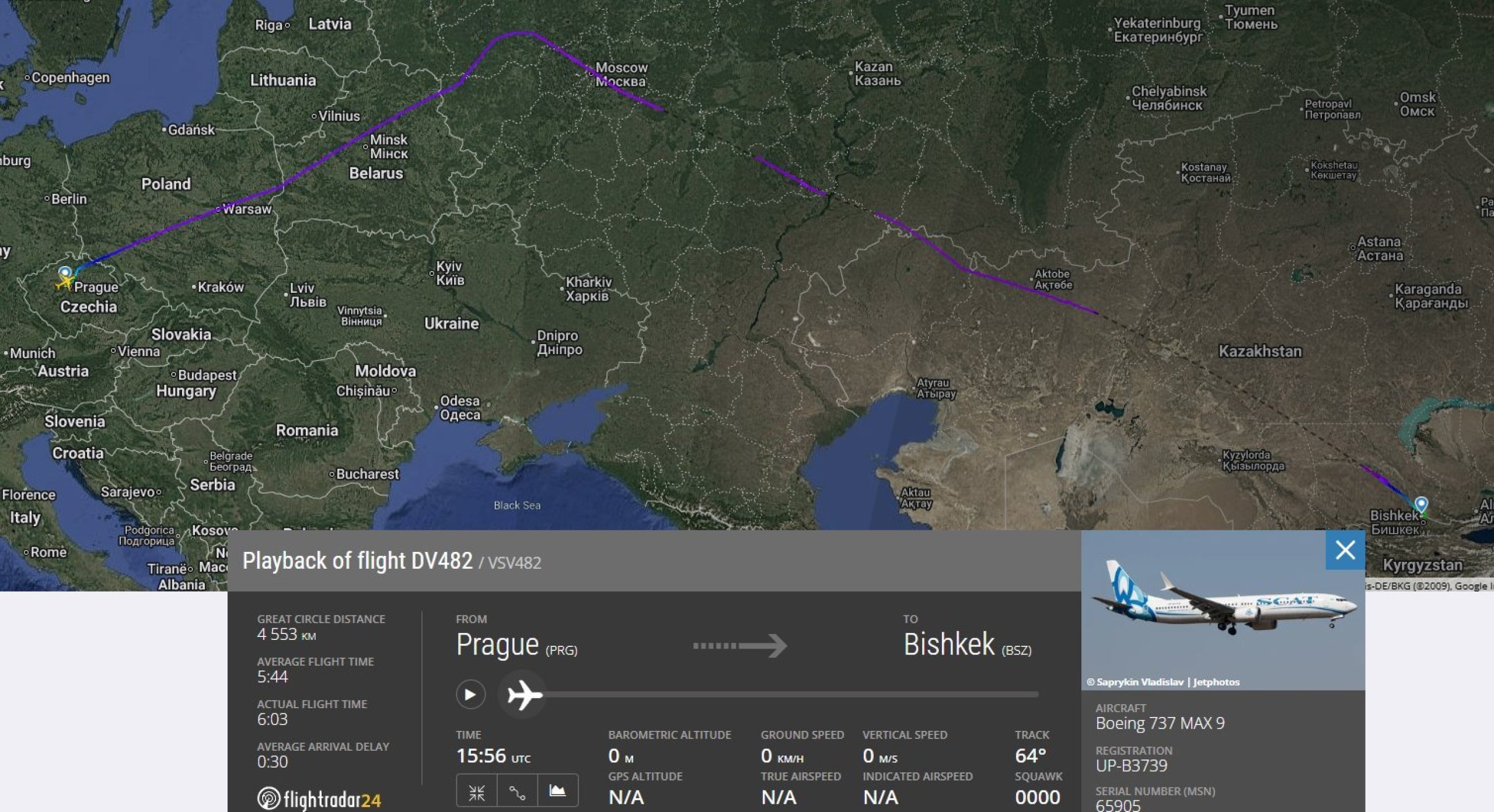 Da wir mit einer Boeing 737 mit schmalem Rumpf fliegen, ist es nicht realistisch, diese Strecke mit einer Tankfüllung zurückzulegen. Daher wird eine technische Zwischenlandung in Kirgisistan eingelegt, um aufzutanken. Die Zwischenlandung dauert weniger als 1 Stunde, und die Passagiere bleiben während der gesamten Zeit an Bord des Flugzeugs.