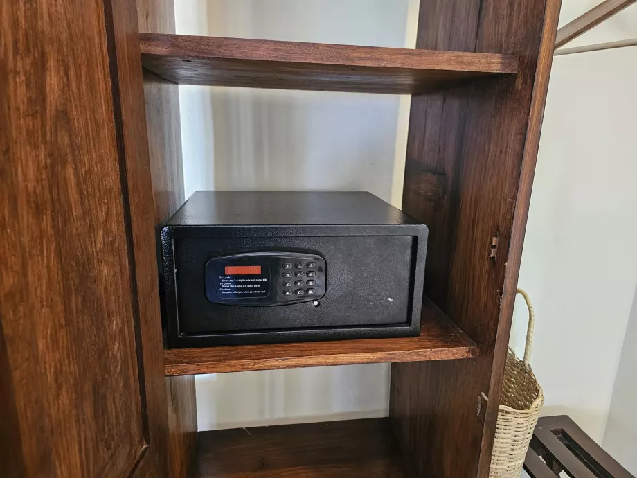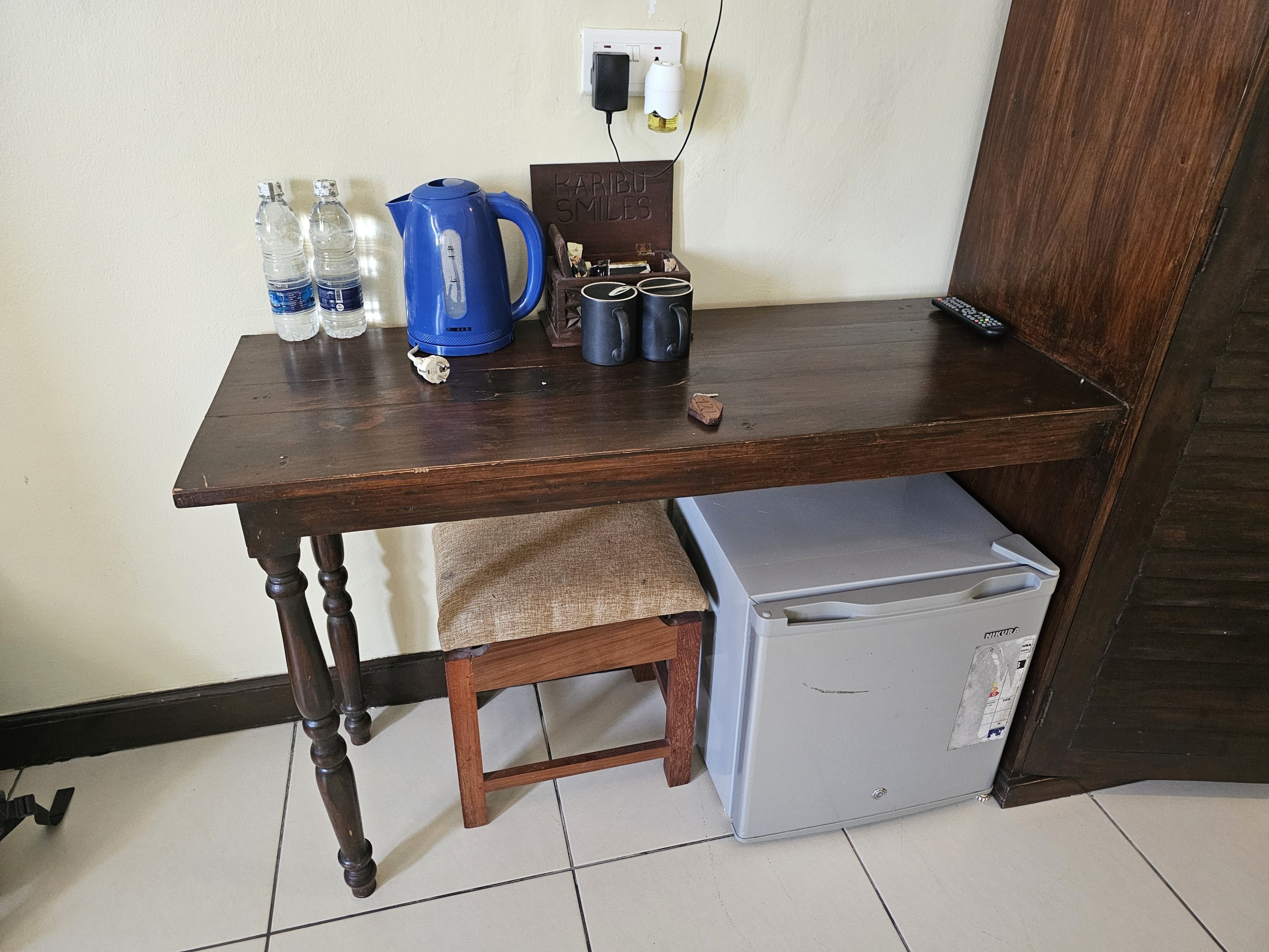 Außerdem befinden sich im Zimmer ein Safe, ein Strandtuch, ein Wasserkocher, Instantkaffee und Tee.