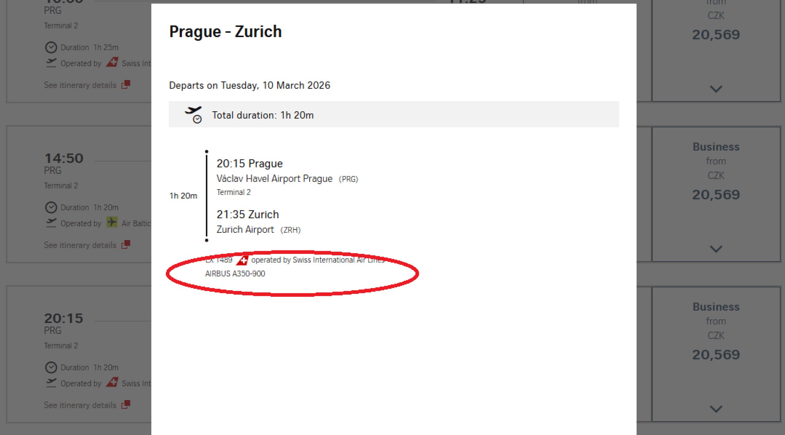 Fliegen Sie mit Swiss International Air Lines in einem Airbus A350 und dessen Premium Economy auf der Strecke Prag - Zürich? Das klingt nach einem Fehler im Buchungssystem.