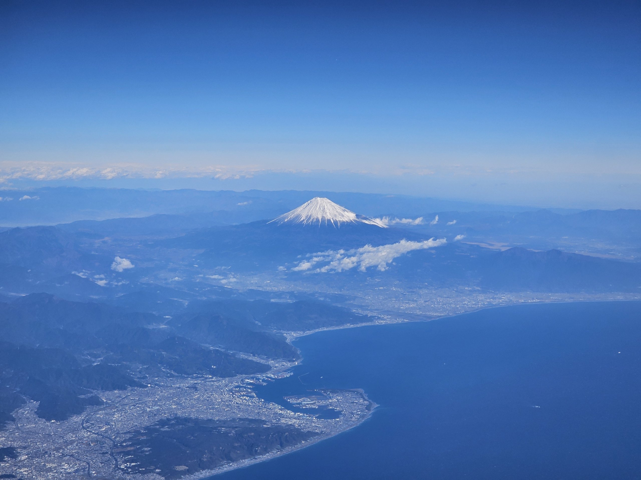 Die absolut beste Möglichkeit, den Fuji vom Flugzeug aus zu sehen, ist, wenn man vom kleinen Flughafen Shizuoka in Richtung Norden abfliegt.