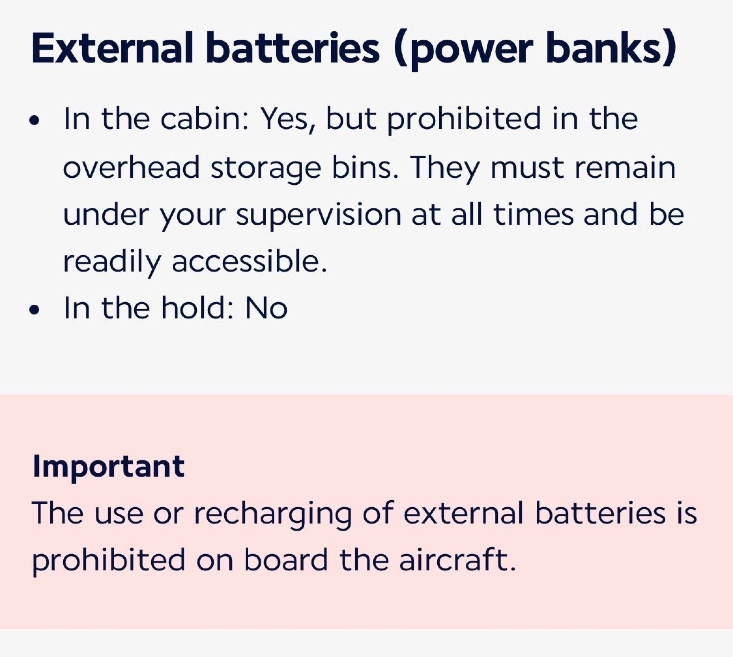 Einige Fluggesellschaften verbieten jedoch die Verwendung von Powerbanks während des Fluges.