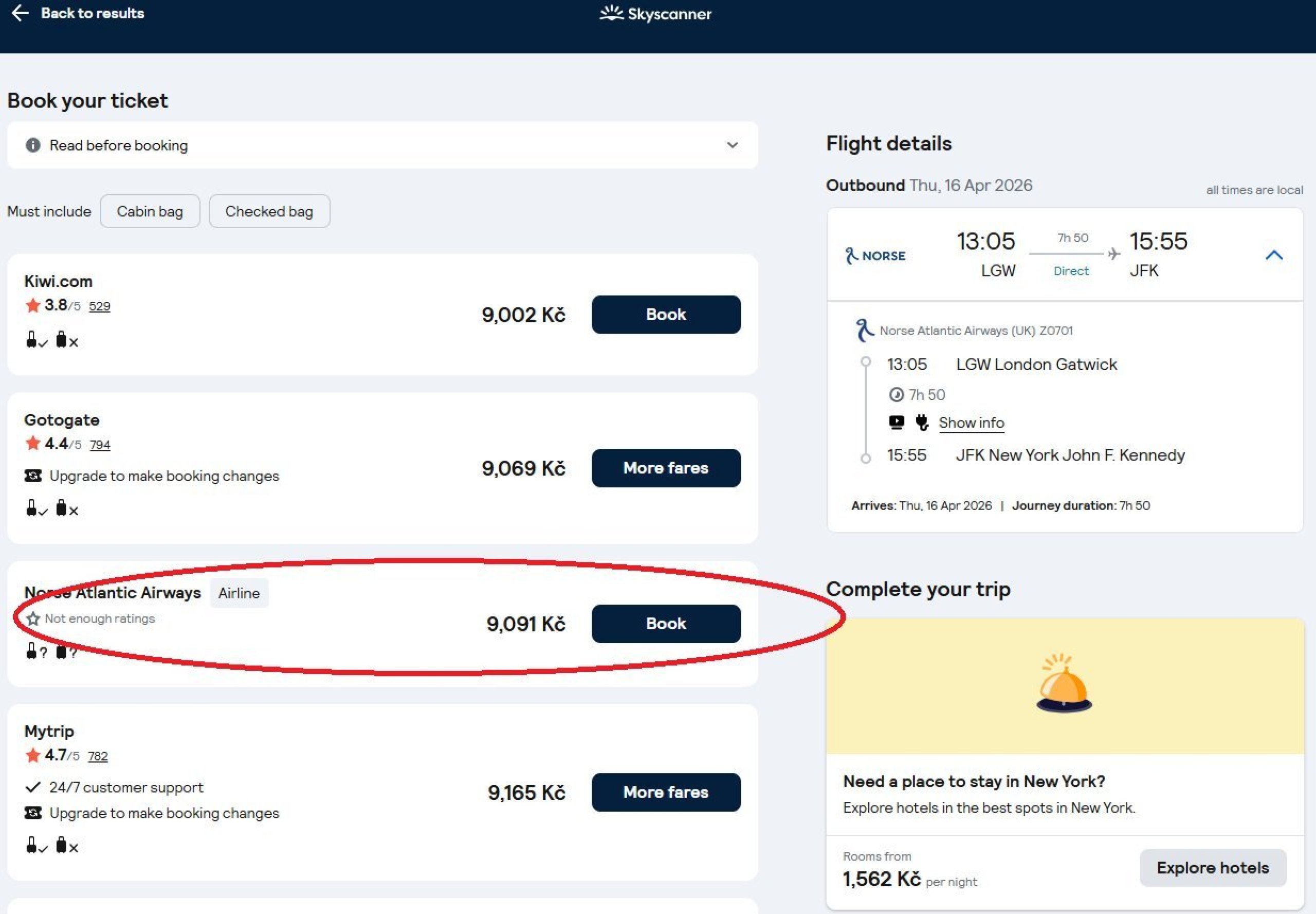 Das Gesamterlebnis hängt also weitgehend davon ab, wo Sie das Ticket tatsächlich kaufen - bei welchem Händler Sie sich von Skyscanner aus durchklicken.