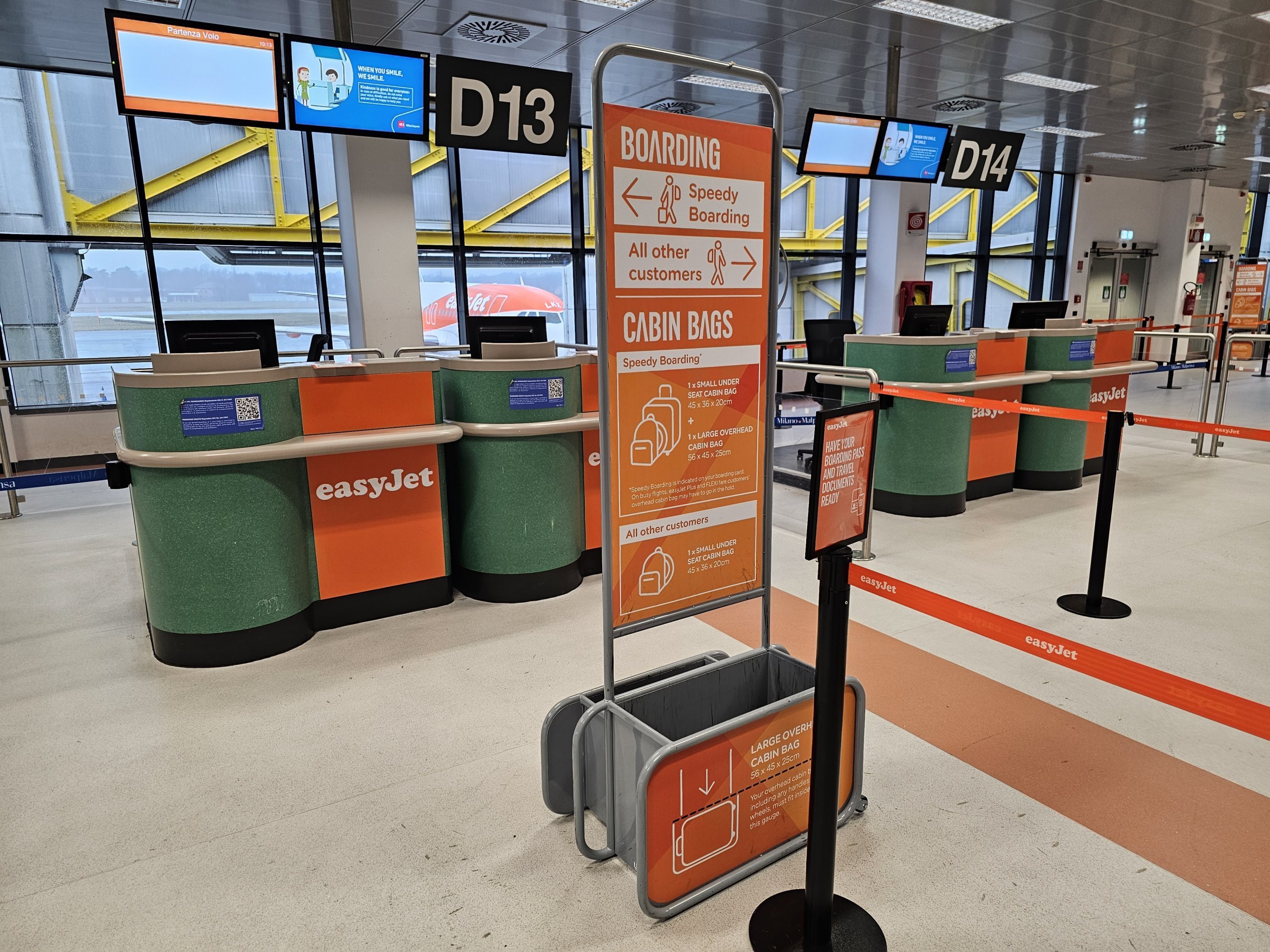 Sie können Ihr Gepäck bis zu 40 Minuten vor dem Abflug am Flughafen aufgeben. Bei bestimmten Flügen schließen die Check-in-Schalter jedoch bereits 60 Minuten vor Abflug, z. B. in London Gatwick oder Paris CDG.