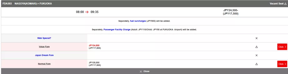 Sie können Tickets mit Fuji Dream Airlines vor allem auf Flügen zwischen japanischen Regionen und kleineren Drehkreuzen kaufen.