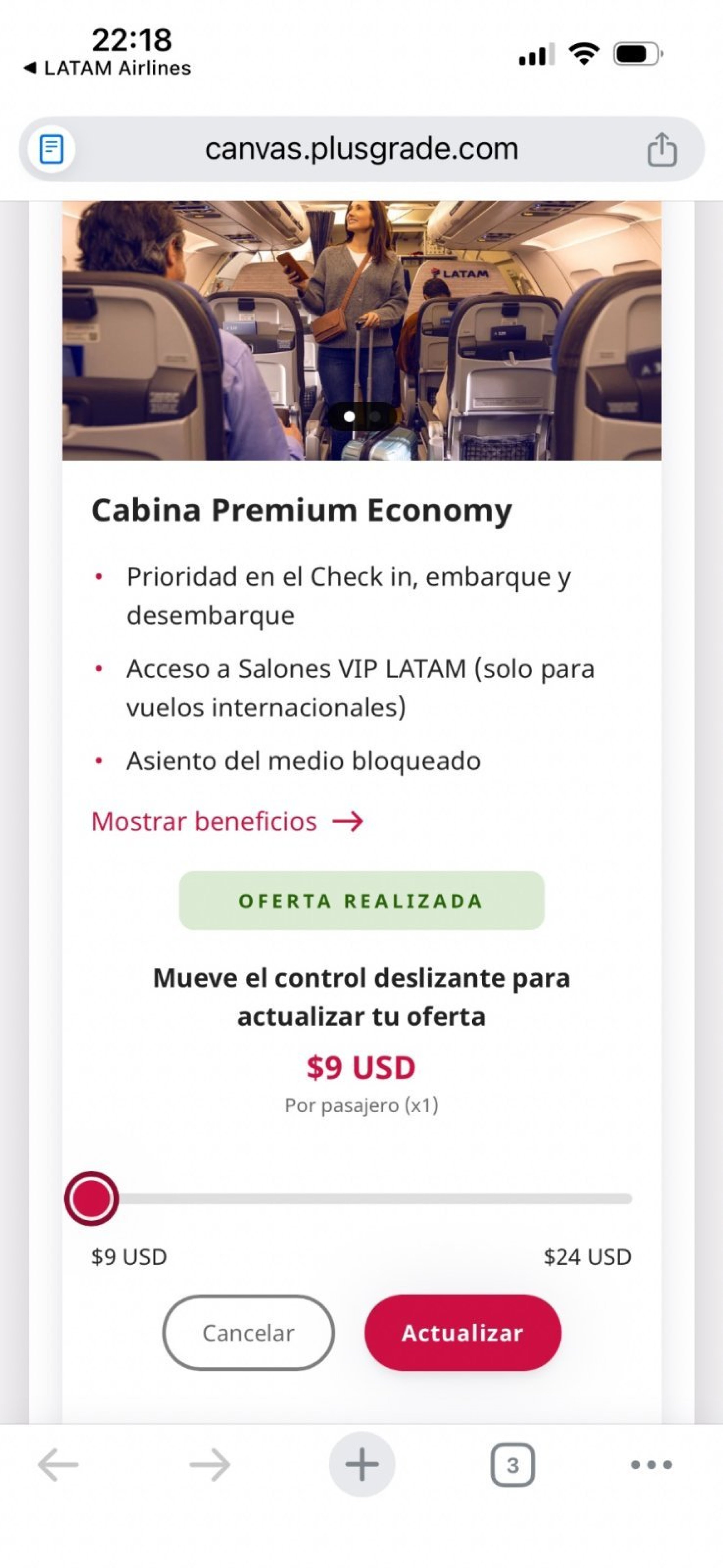 Die Preise variieren je nach Flugstrecke und die detaillierten Bedingungen finden Sie unter latamairlines.com/baggage.
