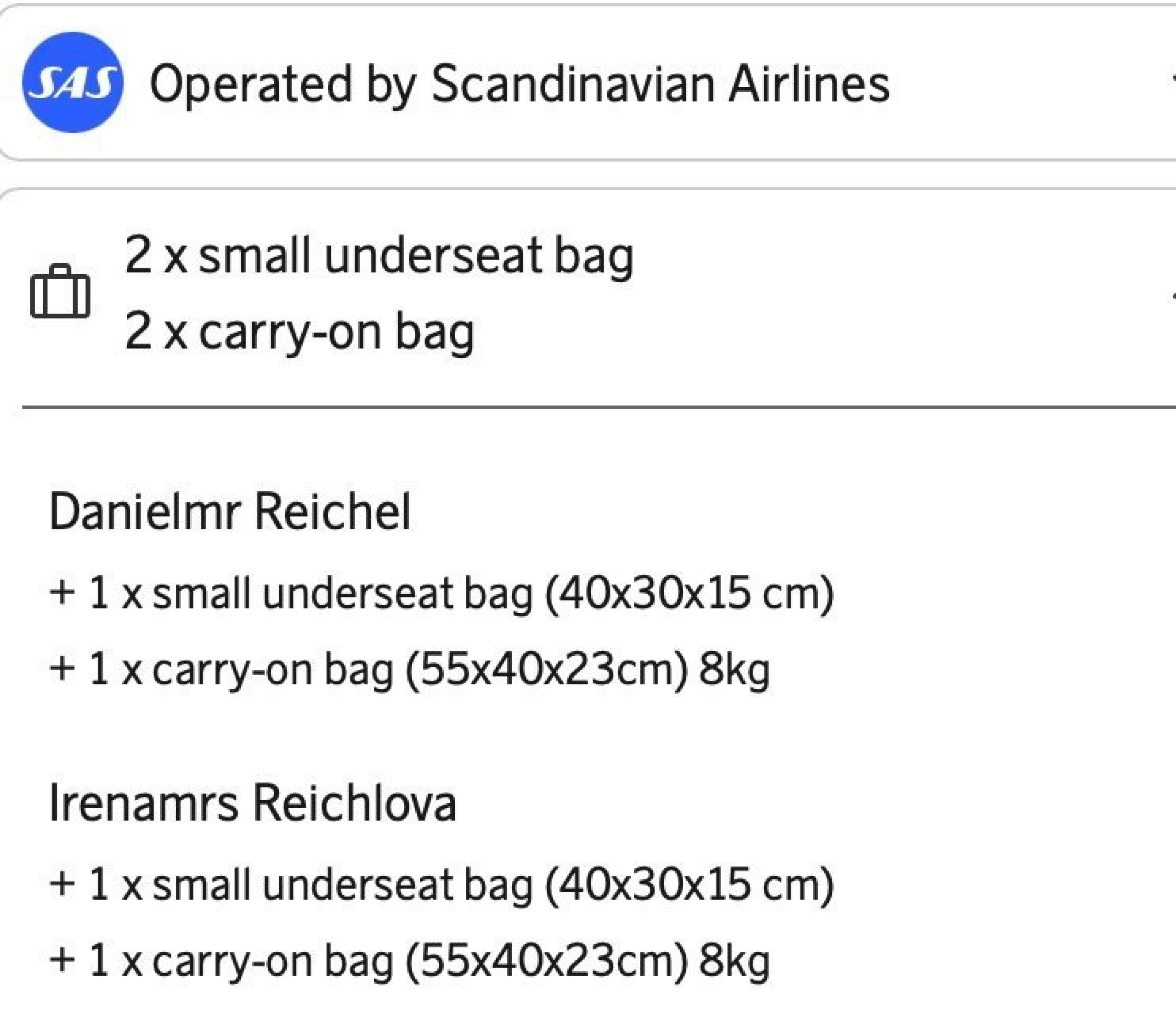 Was viele Passagiere nicht bedenken, ist, dass der günstigste SAS GO Light-Tarif für kurze Flüge in und um Europa (Nordafrika, Kanarische Inseln usw.) nur ein kleines Handgepäckstück beinhaltet, das unter den Sitz vor Ihnen passt.